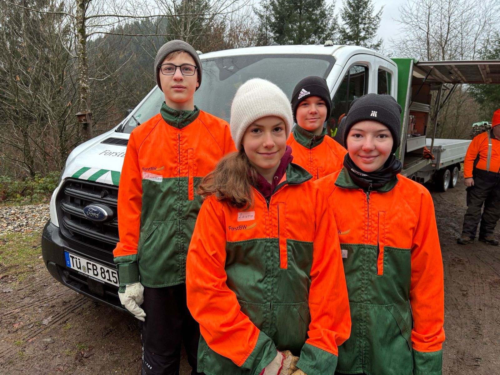 Nach einer Höllhoftour, wurden wir für den Arbeitstag morgen im Wald mit Jacken ausgestattet.