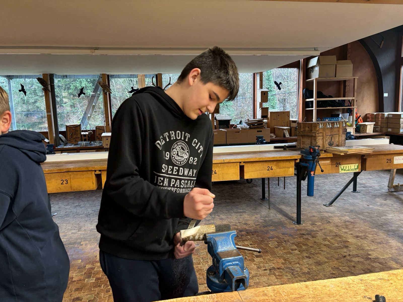 Nach dem Wiedehopf lernten wir heute den Waldteufel, Bügelsäge und die Stabsäge kennen. Am Nachmittag standen dann Workshops zur Auswahl: Tassen bemalen, Wildschwein basteln, Feuer machen und Waldsalz herstellen.