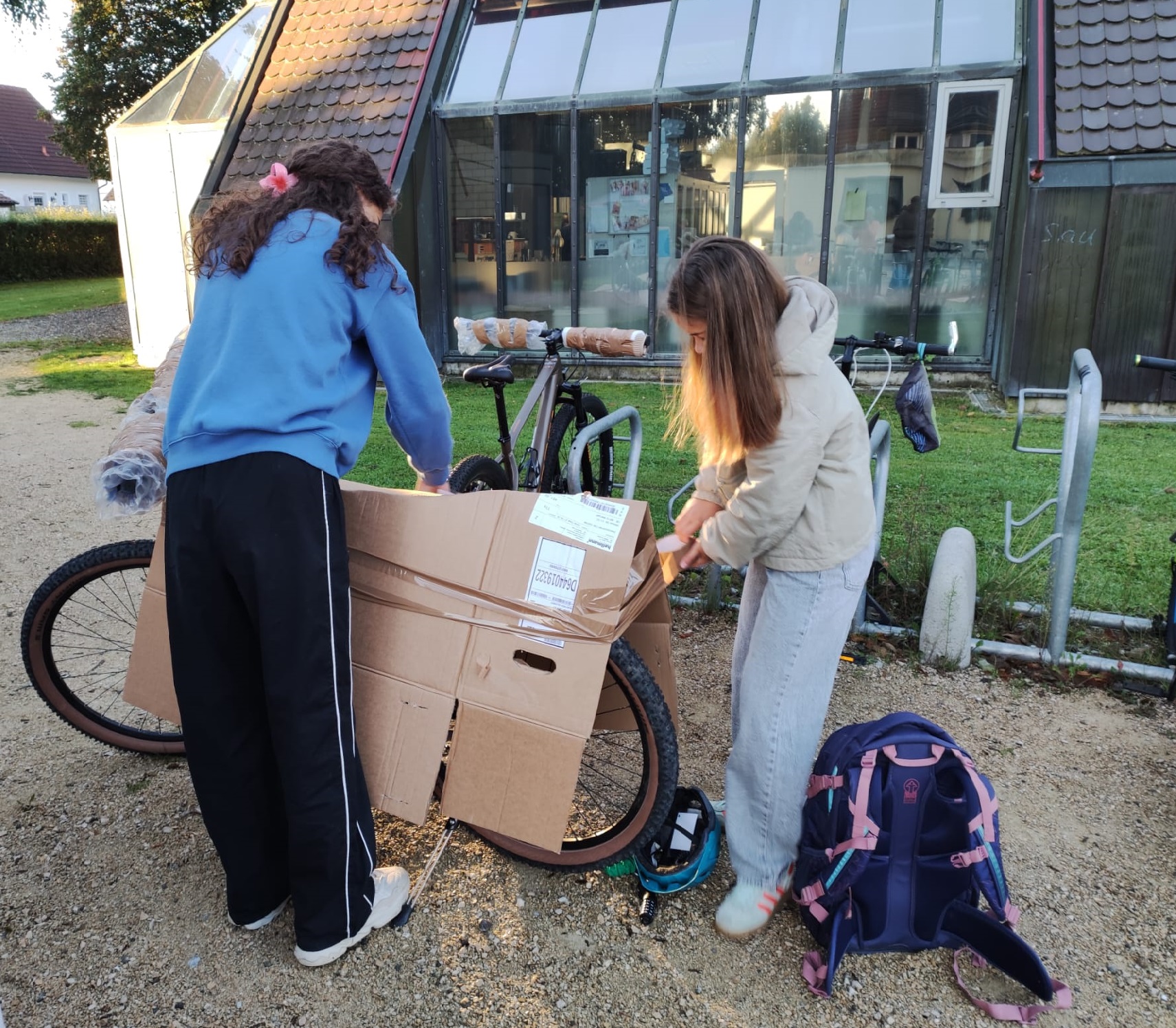 In der zweiten Schulwoche nach den Sommerferien reisten Julian (6a), Viktoria (8a), Leni, Josefine, Lasse, Anton (8b), Ludwig, Maia (9a) sowie Schülermentorin Helene und Lehrerin Katrin Westermann nach Berlin. Die Räder waren bereits per Spedition dorthin transportiert; am ersten Tag folgte das Auspacken, die gründliche Überprüfung der Ausrüstung und ein kleines Probetraining auf der Wettkampfstrecke.