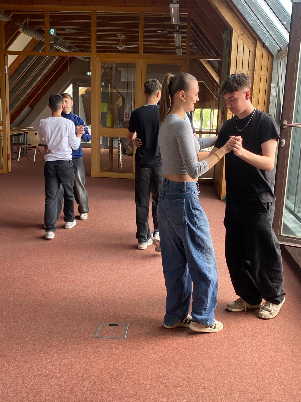 Anfang Mai haben unsere Zehntklässler an zwei Nachmittagen einen Schnuppertanzkurs mit Frau Weber von der Tanzschule Dance & More (Salem) absolviert. Neben Discofox, langsamem Walser und Salsa haben sich die Schüler*innen dabei auch mit korrekten Umgangsformen bei Tanzveranstaltungen auseinandergesetzt.