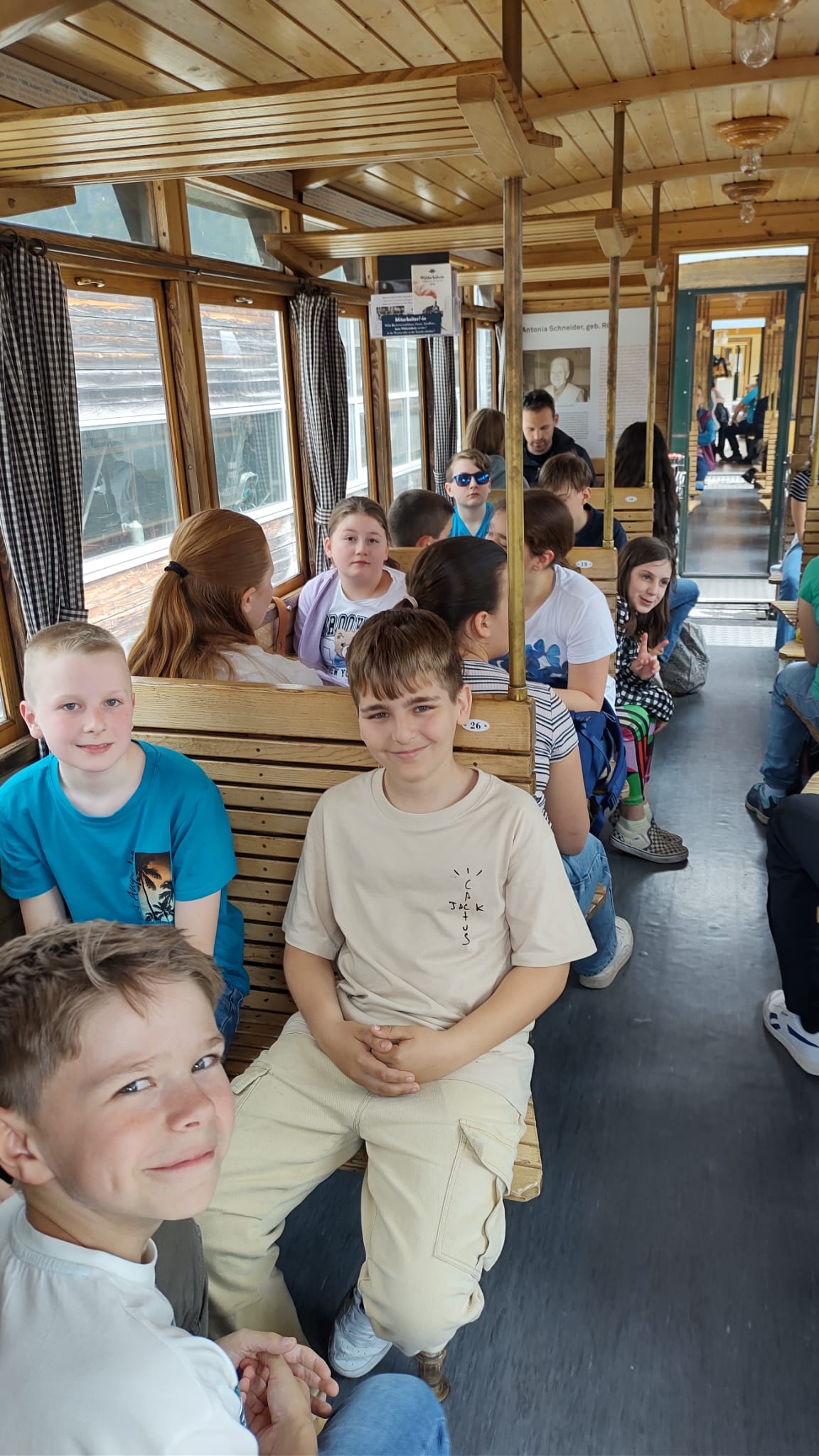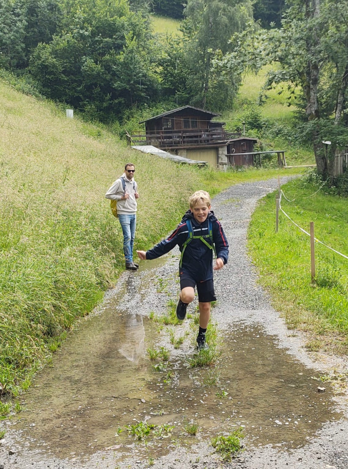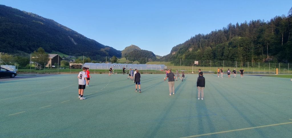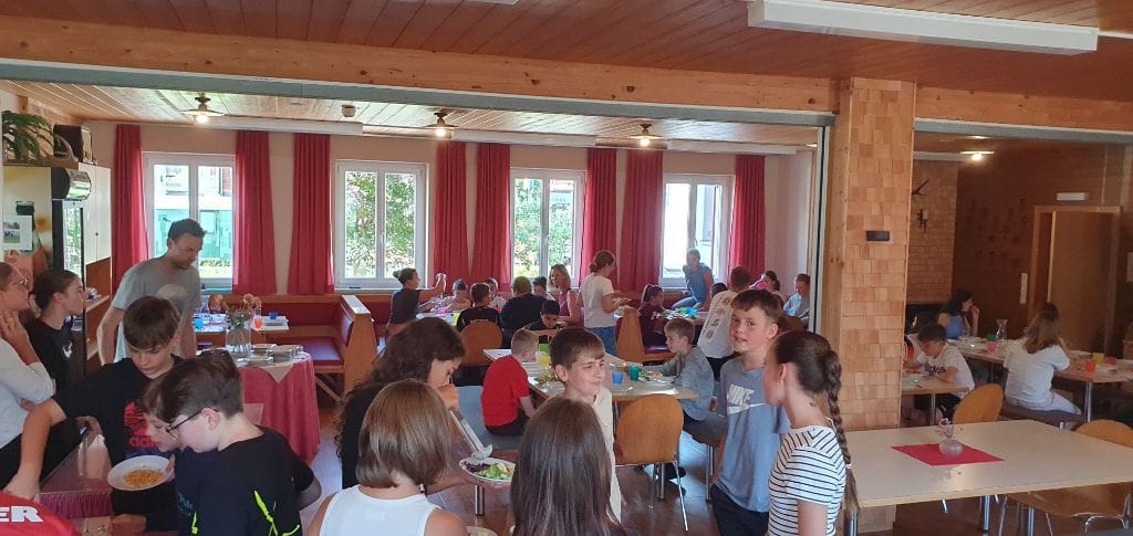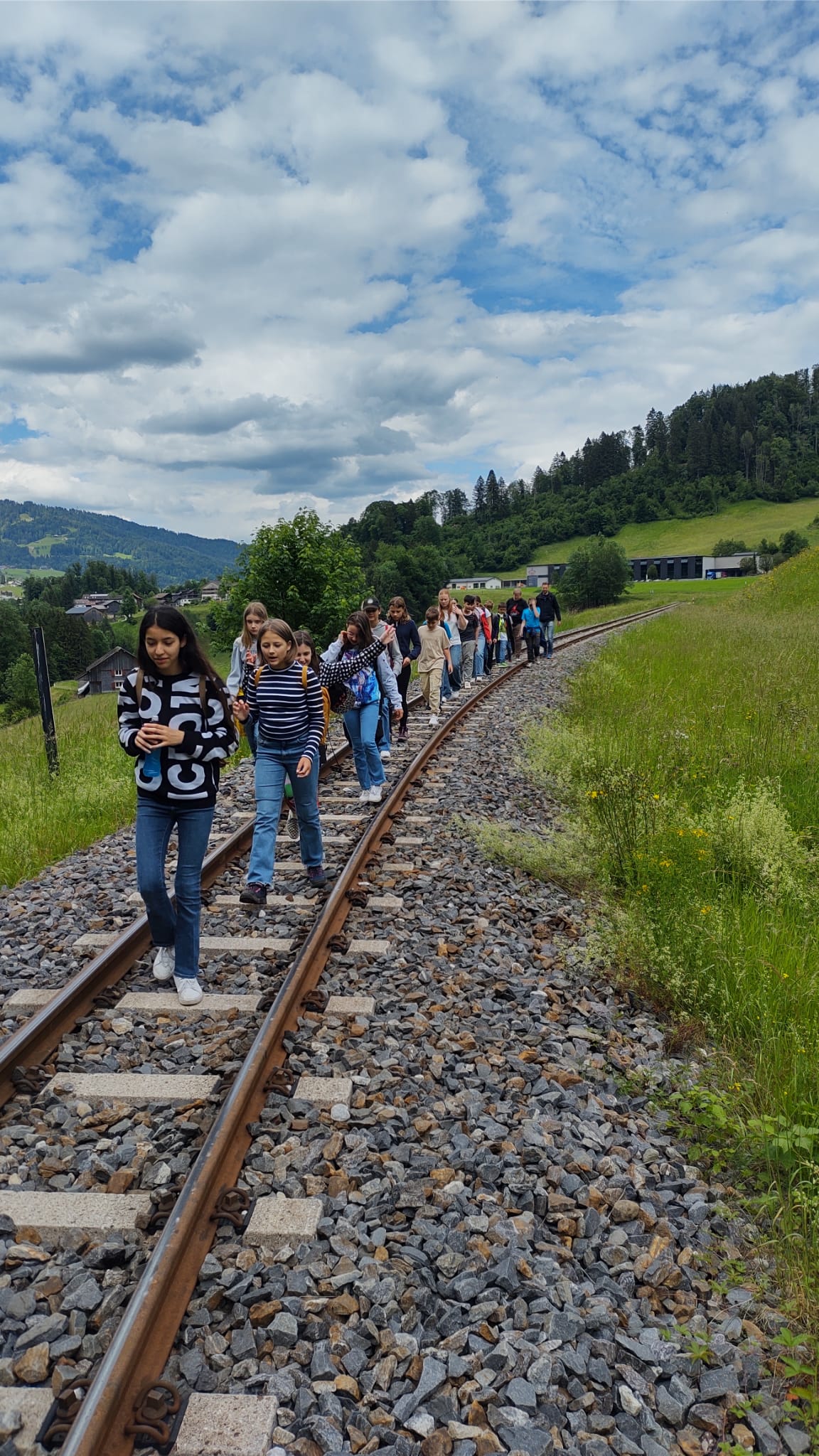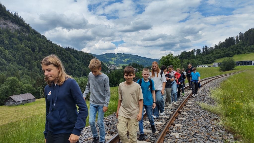 Nach der Mittagspause in der Unterkunft genossen wir nachmittags die Fahrt mit dem alten Museumsbähnle nach Bersbuch. Dort angekommen, liefen wir zuerst auf dem Fahrradweg und dann – nachdem die Bahn wieder durchgefahren war – auf den Schienen den Weg direkt zurück zum Bahnhof in Bezau, der nur einen Katzensprung vom Gästehaus entfernt liegt. Abends freuten sich alle über Salatbüffet und leckeren Kaiserschmarrn; und nach der Handyzeit tobten sich die Fußballer noch auf dem Fußballplatz im Dorf aus.