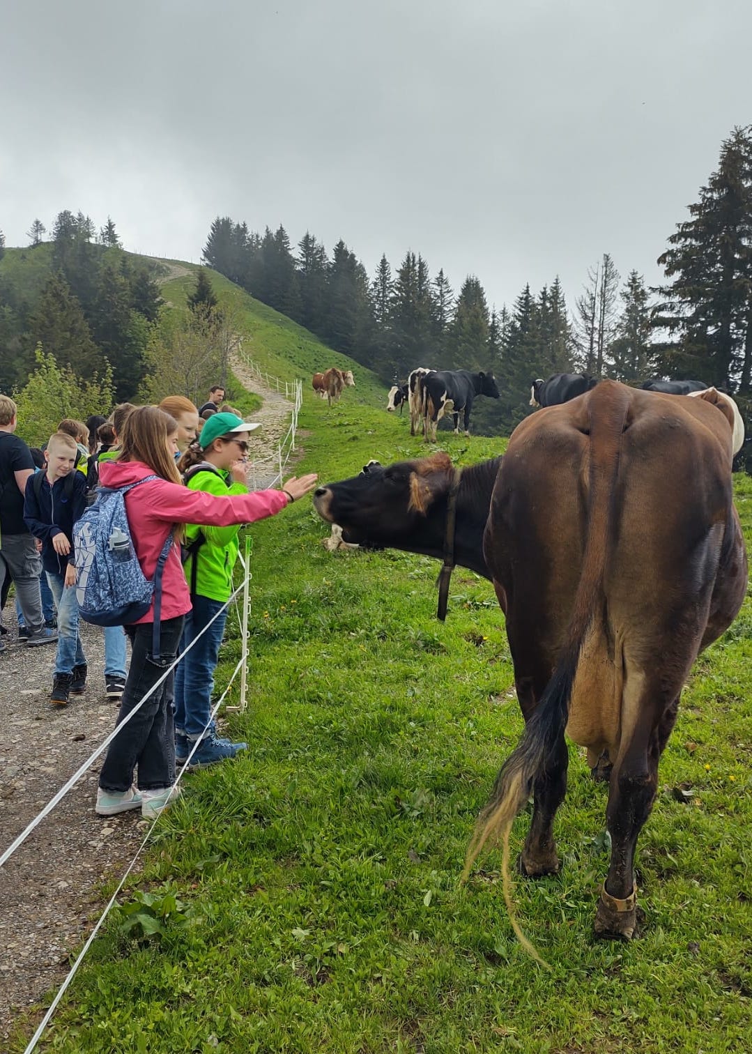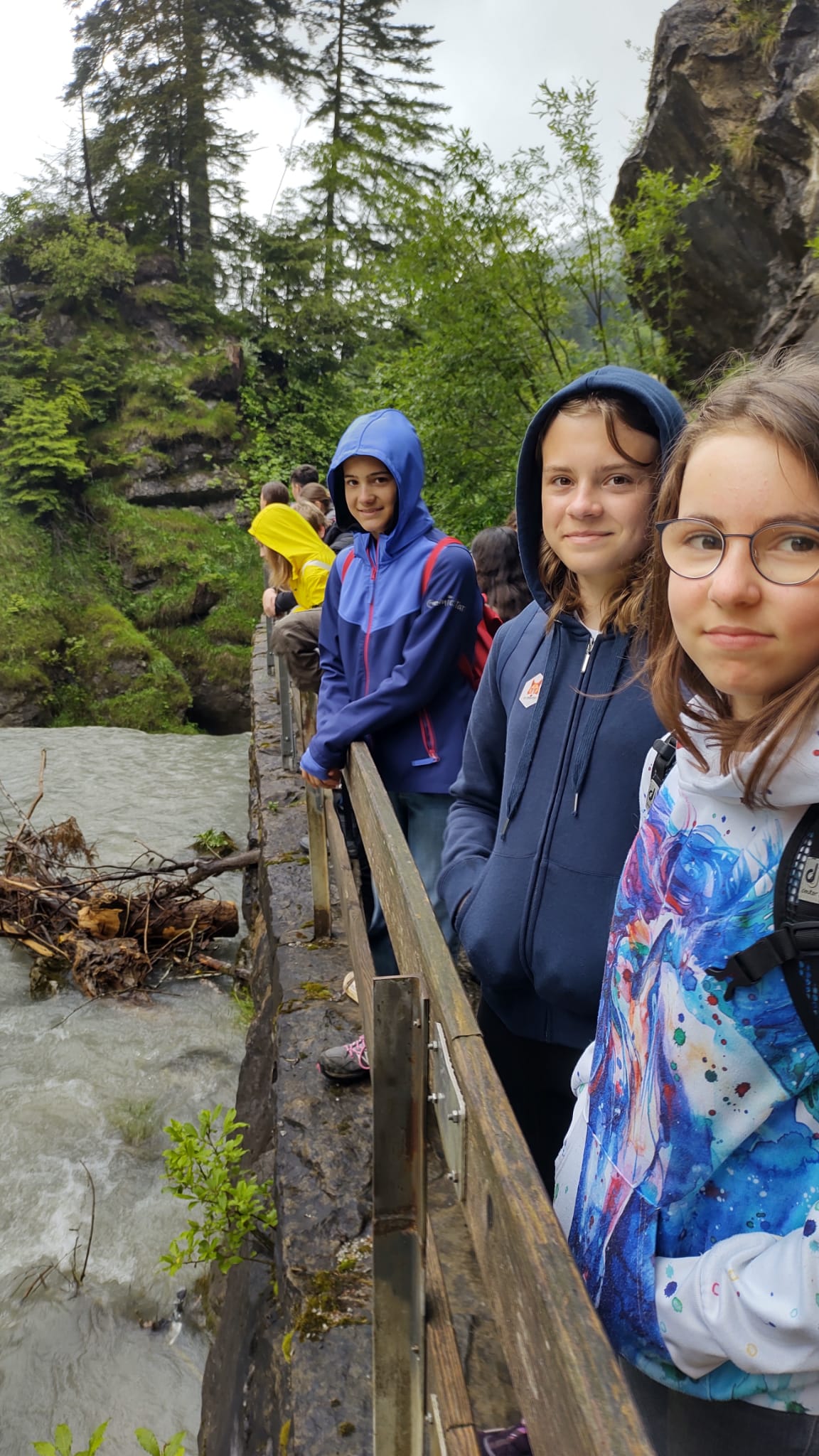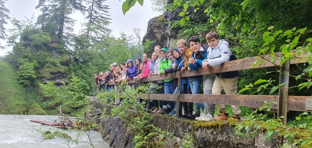 Am Nachmittag bestaunten wir die Wasserfälle in der Rappenlochschlucht in Dornbirn. Hungrig vom Wandern freuten wir uns beim Abendessen sehr über Chicken Nuggets und Pommes und unsere Freizeit vor und nach dem Abendessen, die einige auch im Streichelzoo von Haus "Kanisfluh" verbrachten.