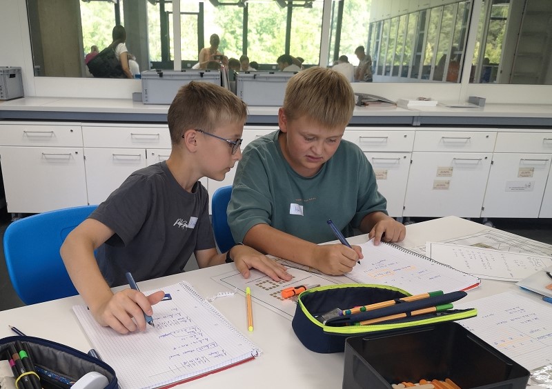 Wir, die Klasse 6a, trafen uns um 7.38 Uhr am Mengener Bahnhof, um uns auf den Weg nach Tübingen zu machen. Dort angekommen, wurden wir herzlich empfangen und ins Lehr-Lern-Labor gebracht, eine Art Klassenzimmer. Hier wurden wir über Formeln in Gruppen eingeteilt.
