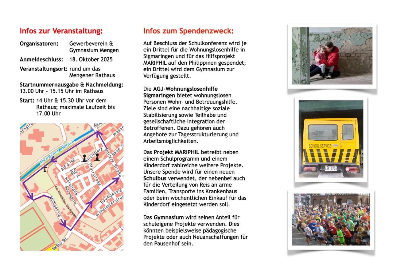 Fotos und Logos: Charity Run 2023, https://www.agj-wohnungslosenhilfe-sigmaringen.de (24.09.2025) sowie https://mariphil.net (24.09.2025)