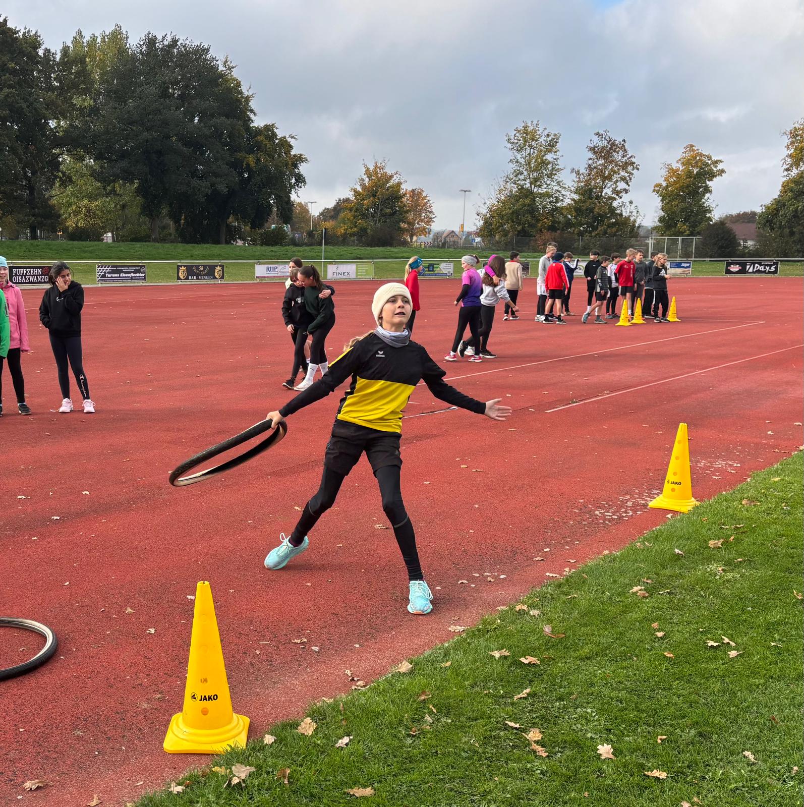 Auch in diesem Schuljahr fanden Mitte Oktober bei angenehmen Herbsttemperaturen die Bundesjugendspiele der Klassen 5-7 statt. Die Schülerinnen und Schüler absolvierten einen Vierkampf, der aus Sprint, Fünfsprung, Drehwurf und dem abschließenden Crosslauf bestand. Dabei wurden die Leistungen nicht an einer bundesweit einheitlichen Tabelle gemessen, sondern innerhalb der Jahrgangsstufe, Jungen und Mädchen getrennt.