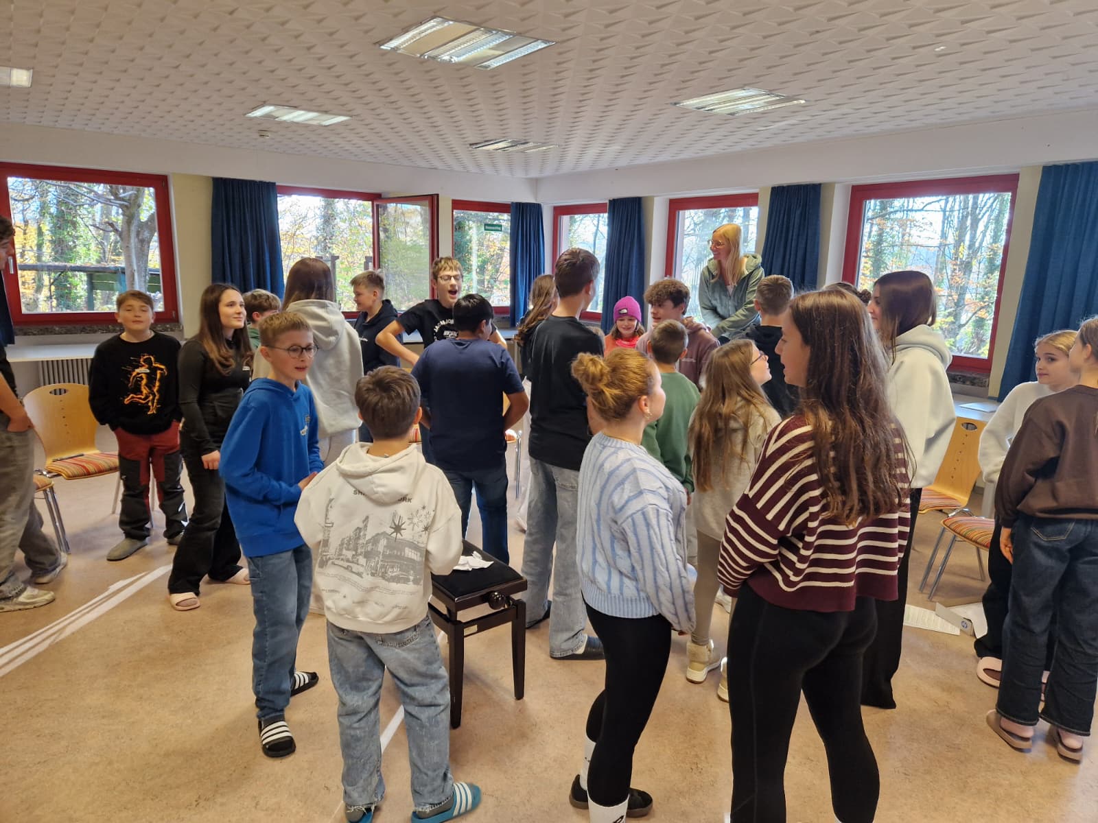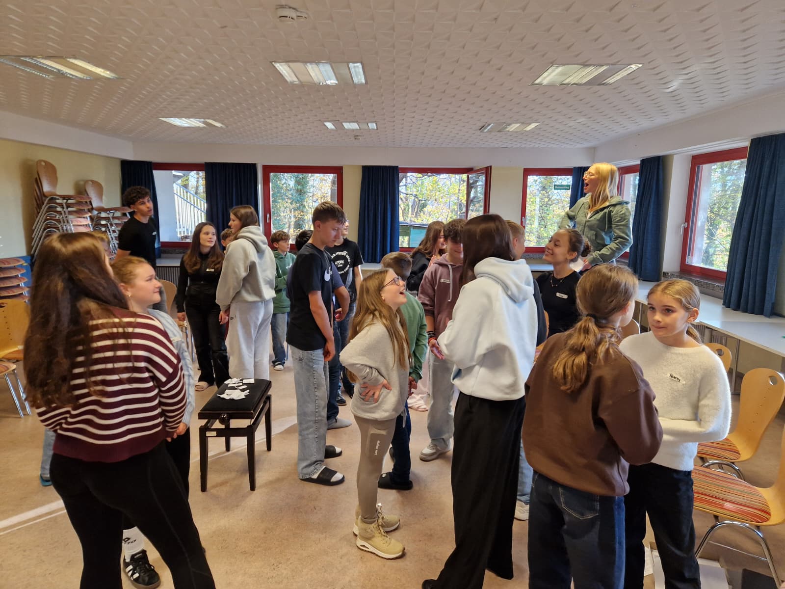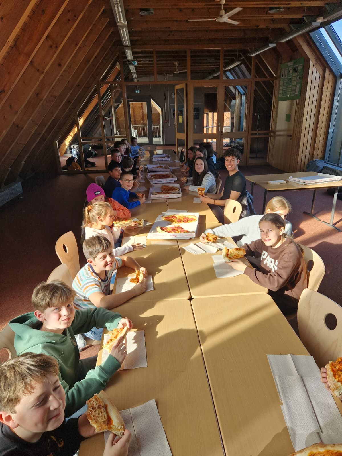 Die SMV-Hütte startete um 12:40 im Musiksaal mit gemeinsamem Pizzaessen und der Begrüßung durch die SMV-Lehrer Frau Zengerle und Herr Callies. Nachdem alle aufgegessen hatten, machte sich die Gruppe in Fahrgemeinschaften auf den Weg ins Landschulheim Biberach. Dort angekommen teilten sich die Schüler in ihre Zimmer ein und bezogen diese. Danach gab es ein Treffen im Gemeinschaftsraum, wo besprochen wurde, welche Projekte dieses Schuljahr anstehen.