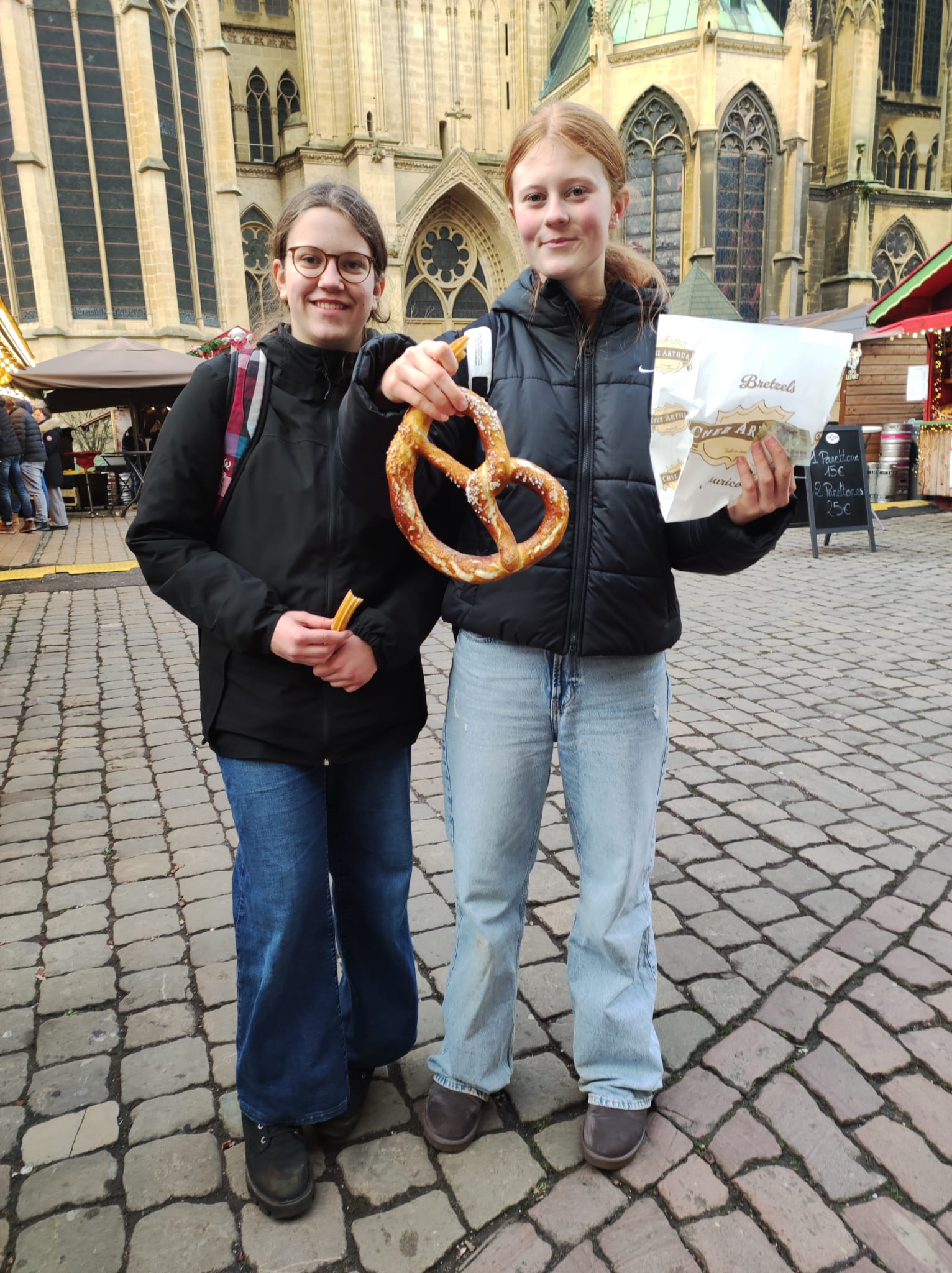 Am Dienstag, 16. Dezember sind wir um 6:30 Uhr aufgestanden, da wir einen Ausflug mit unseren Austauschschülern geplant hatten. Es ging los mit einer einstüdigen Fahrt zur Festigung Hackenberg bei Veckring. Dort haben wir zuerst eine Führung durch den Bunker bekommen, wir haben uns z.N. den Zahnarzt, die Küche usw. angeschaut. Anschließend sind wir mit einem kleinen Bähnle ca. einen Kilometer durch den Bunker gefahren und waren nach einigen Stufen endlich am Feuerturm. Nach der Besichtigung ging es weiter; nach nochmal über eine Stunde Fahrt sind wir in Metz angekommen. Dort haben wir eine Stadtführung geplant. Vorher gab es noch Mittagessen in einem Raum. Wir haben viel über die Geschichte von Metz erfahren und uns die Kathedrale angeschaut. Als wir fertig waren, sind wir wieder mit dem Bus zur Schule gefahren, wo jeder zurück in seine Gastfamilie gegangen ist.