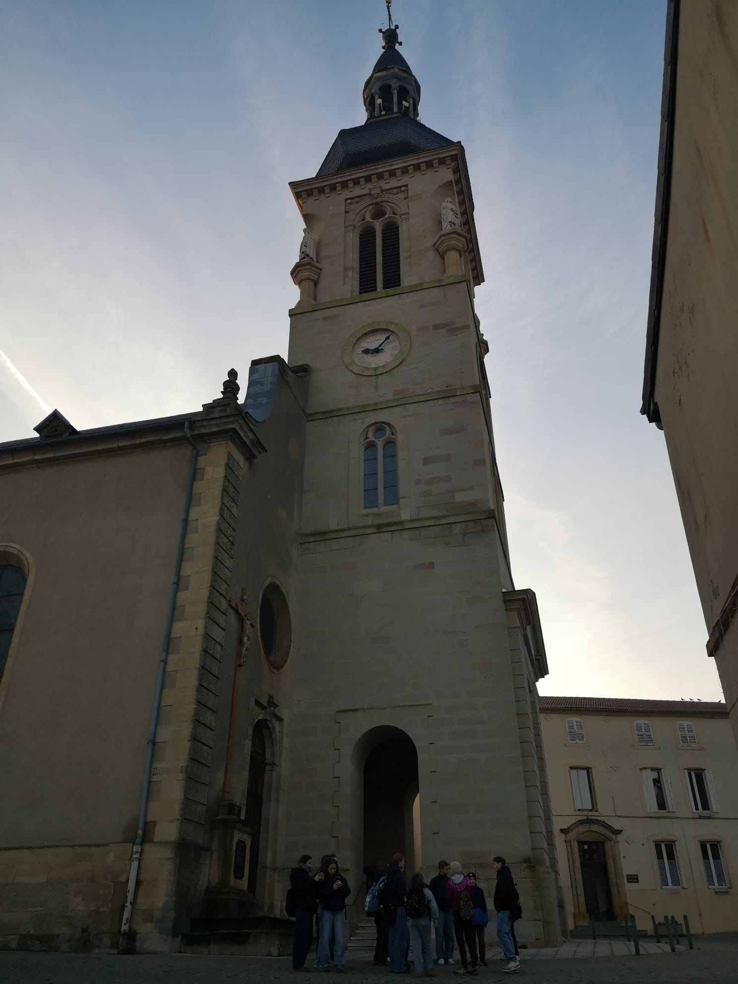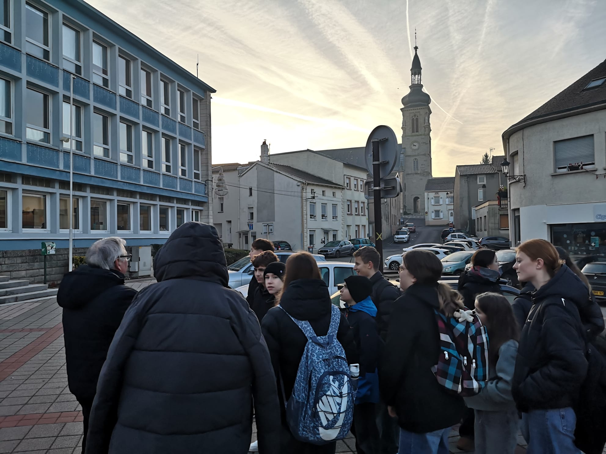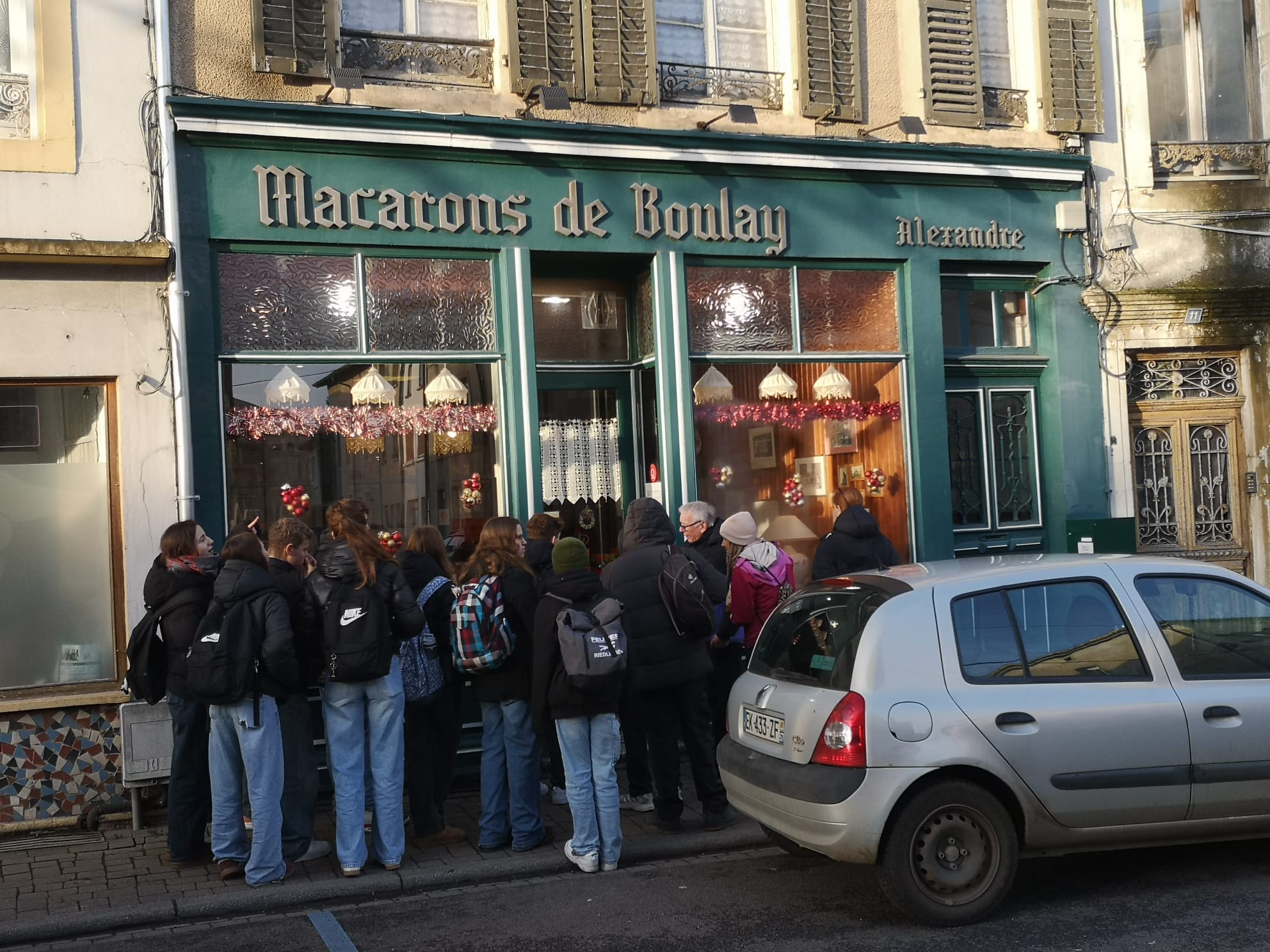 Freitag den 12. Dezember: Unser Tag begann mit dem Treffen im Klassenzimmer wie am Vortag, darauf hin lief die deutsche hälfte in die Innenstadt von Bouley. Dort angekommen sahen wir eine Bäckerei, wo sich einige etwas gekauft haben. Weiter ging es mit einer Führung durch Boulay mit der Übersetzung ins Deutsche von Frau Westermann. Nachdem wir gerade los gelaufen waren, überraschte uns eine Gastmutter mit Croissants und Pains au chocholat frisch vom Bäcker. Der Stadtführer erzählte uns etwas von der Geschichte Boulays und wir besuchten die Kirche und ein berühmtes Maccaron-Geschäft. Zur 3. Stunde waren wir dann wieder zurück an der Schule und nahmen am Unterricht teil. Ein Teil von uns ging noch in die Mittagschule, ein anderer nach Hause. Am Abend unternahmen wir etwas mit unseren Gastfamilien, z.B. auf dem Weihanchtsmarkt in Metz oder in der Nähe.