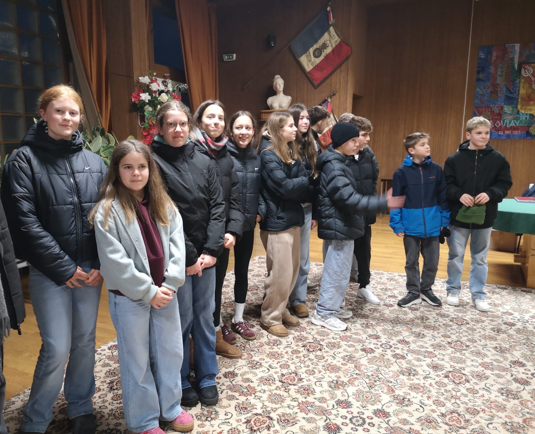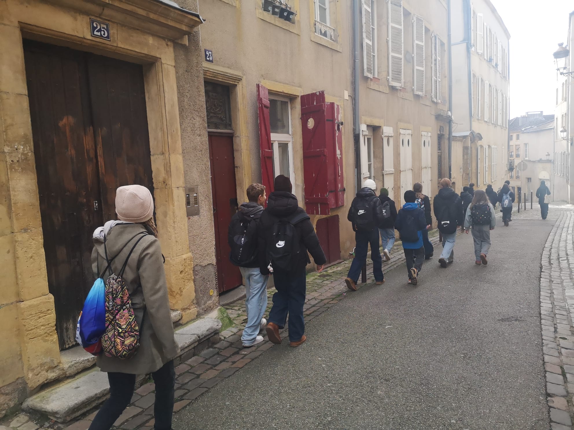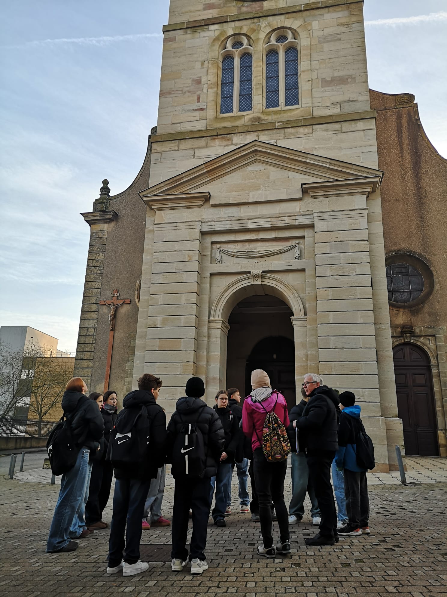 Freitag den 12. Dezember: Unser Tag begann mit dem Treffen im Klassenzimmer wie am Vortag, darauf hin lief die deutsche hälfte in die Innenstadt von Bouley. Dort angekommen sahen wir eine Bäckerei, wo sich einige etwas gekauft haben. Weiter ging es mit einer Führung durch Boulay mit der Übersetzung ins Deutsche von Frau Westermann. Nachdem wir gerade los gelaufen waren, überraschte uns eine Gastmutter mit Croissants und Pains au chocholat frisch vom Bäcker. Der Stadtführer erzählte uns etwas von der Geschichte Boulays und wir besuchten die Kirche und ein berühmtes Maccaron-Geschäft. Zur 3. Stunde waren wir dann wieder zurück an der Schule und nahmen am Unterricht teil. Ein Teil von uns ging noch in die Mittagschule, ein anderer nach Hause. Am Abend unternahmen wir etwas mit unseren Gastfamilien, z.B. auf dem Weihanchtsmarkt in Metz oder in der Nähe.