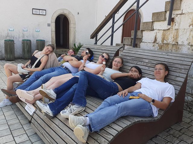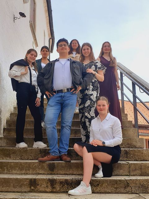 Am Montag nach dem Unterricht ging es los zur Burg. Ein wunderschöner Blick auf das Donautal, unsere feine kleine, siebenköpfige Truppe bezog die Zimmer und schon begannen die Proben. Unter Frau Karras Aufsicht wurden die einzelnen Szenen detailliert im großen Rittersaal geprobt. So lernten wir viel.