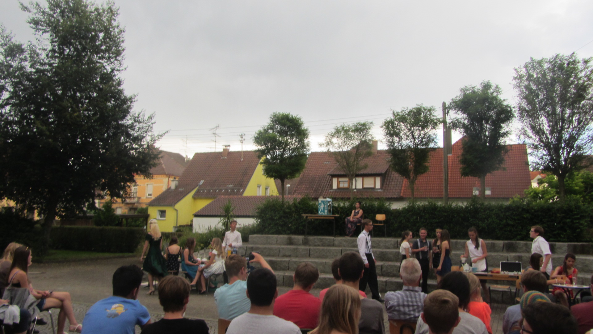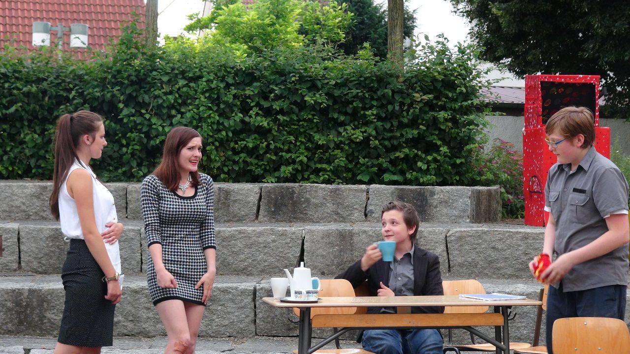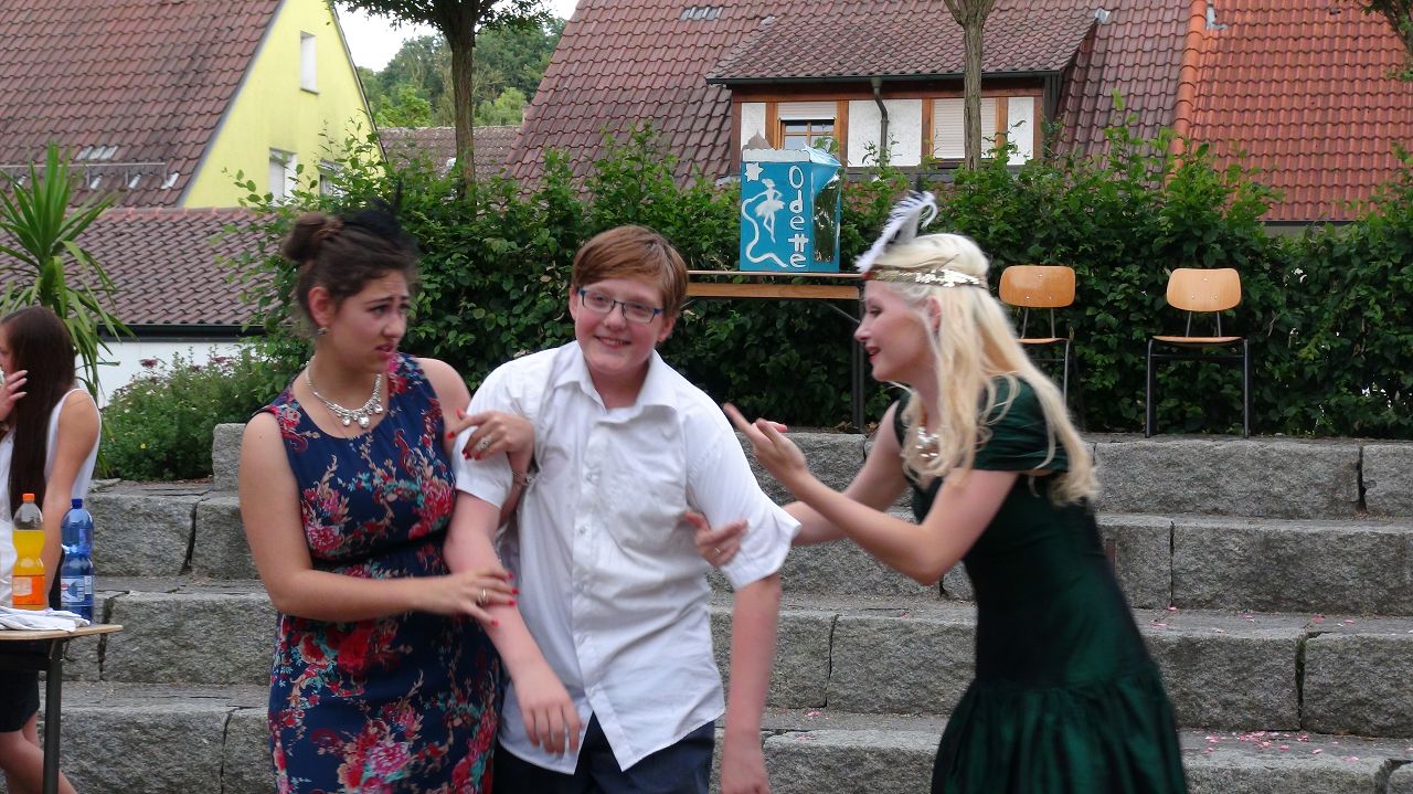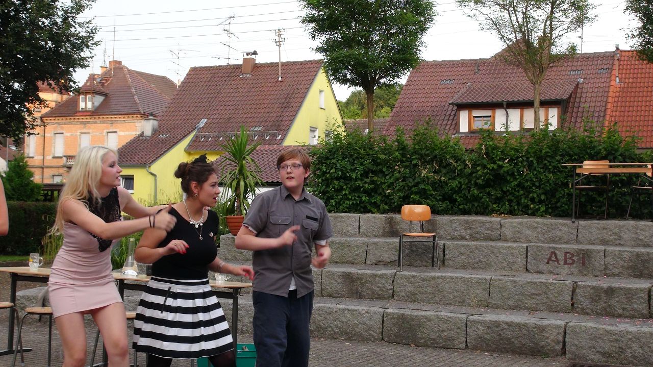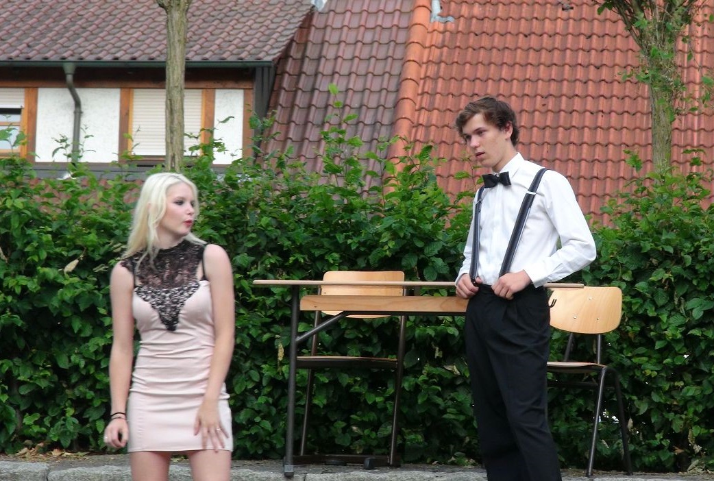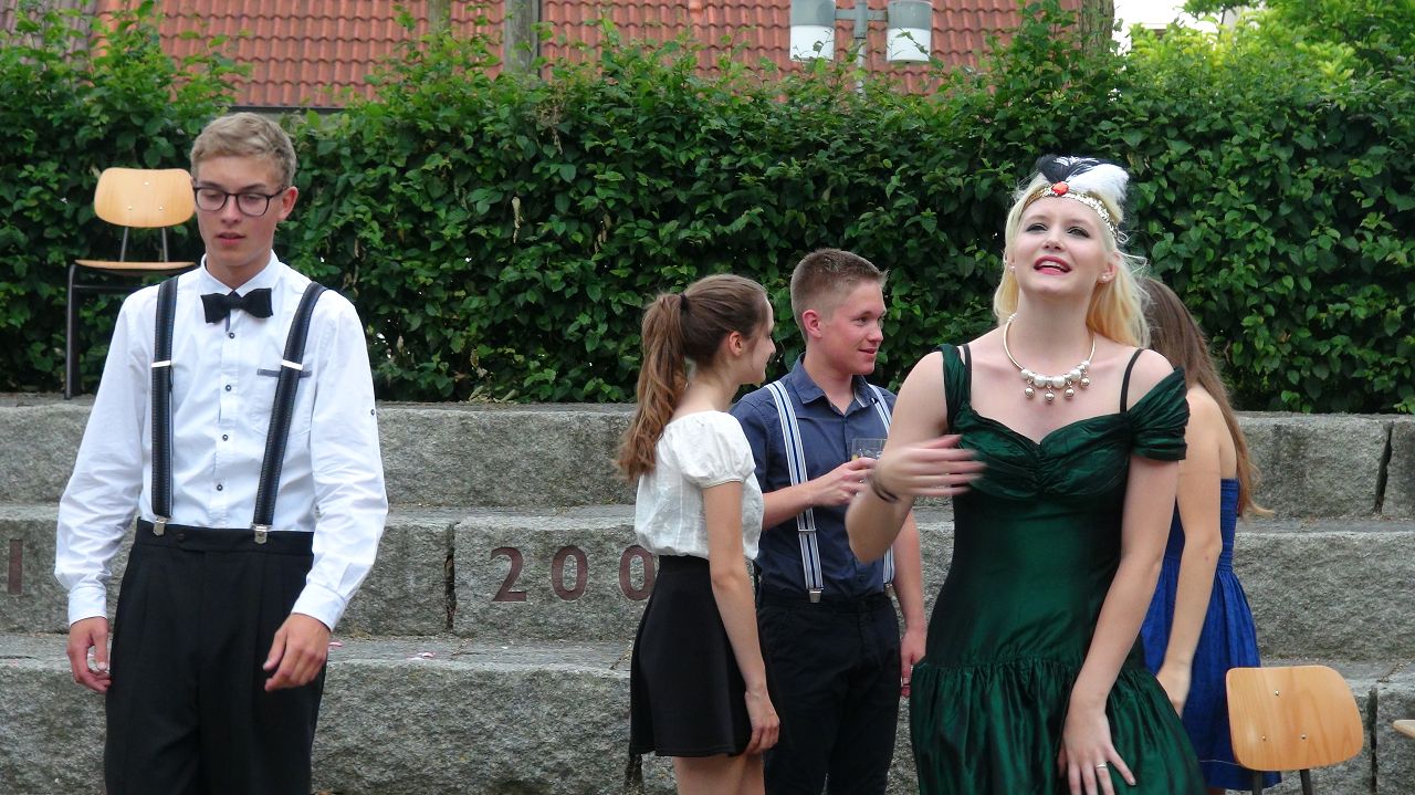 Bereits zur Uraufführung des von Madleen Haberstroh (J2) selbst verfassten Theaterstücks "Was ist die Welt und ihr berühmtes Glänzen?" am 3. Juli waren etwa 200 Besucher gekommen. Mehr als 20 Schauspieler, Statisten und Tänzer traten auf und begeisterten die Zuschauer. Ein Tanz zu "Hit The Road Jack", Rock und Pop-Musik sowie ein Auftritt der Sängerin "Adriana" mit "Hit The Road Jack" (von Ray Charles) erwarteten die Zuschauer.