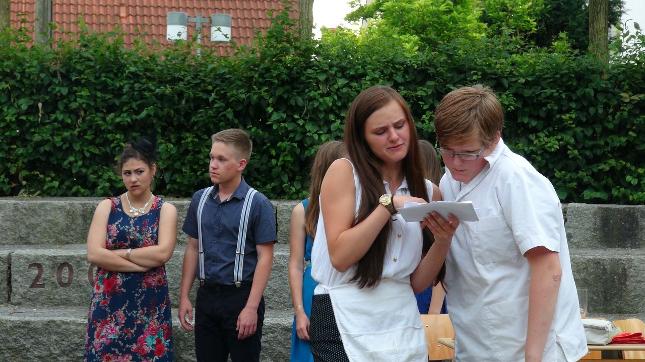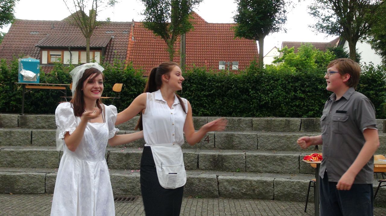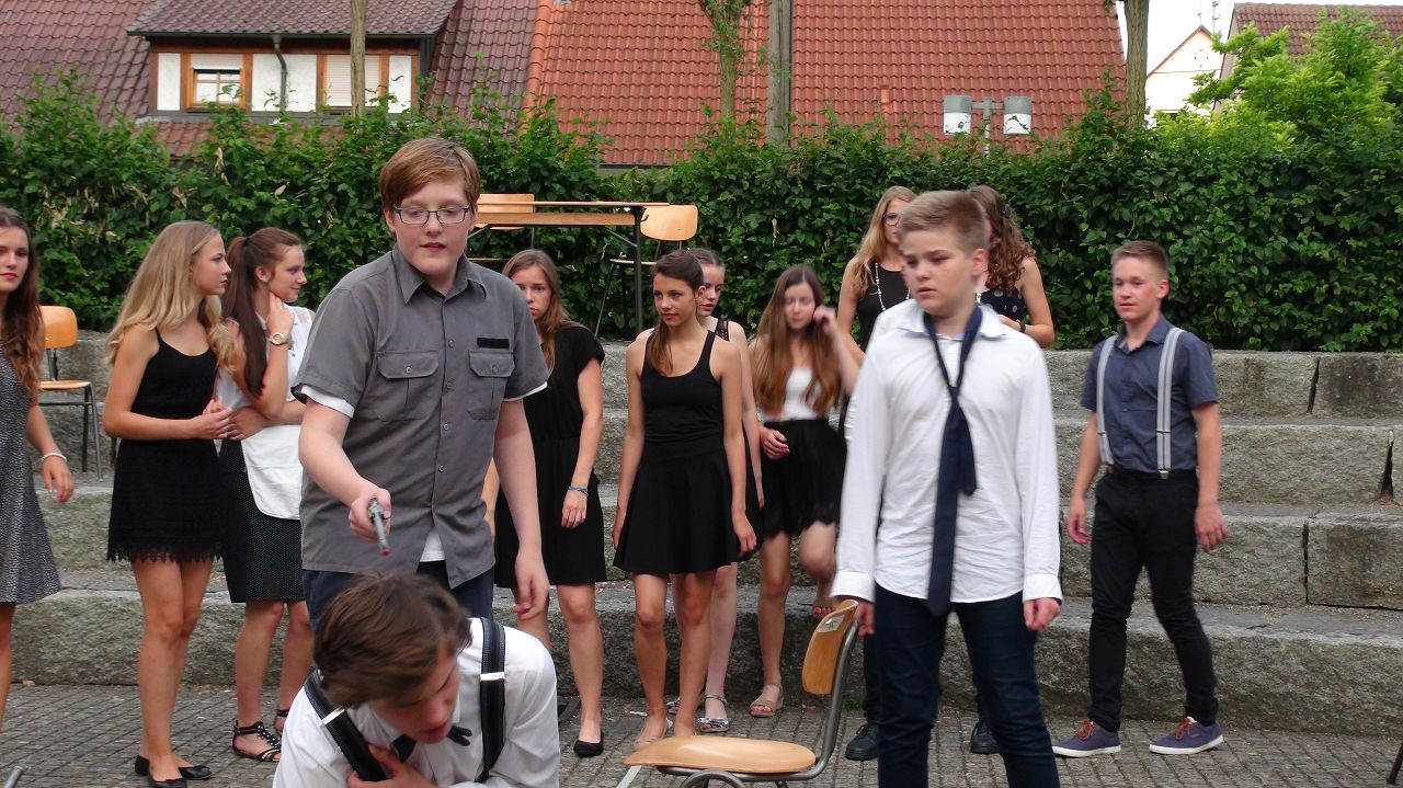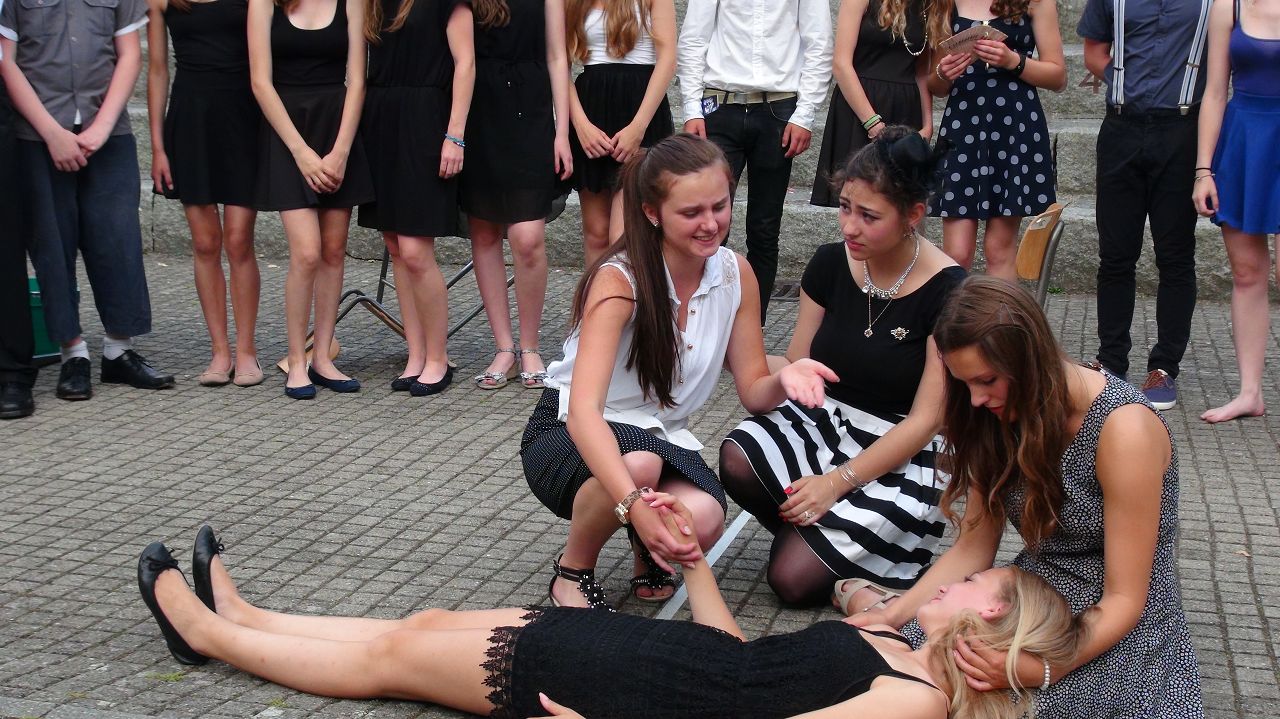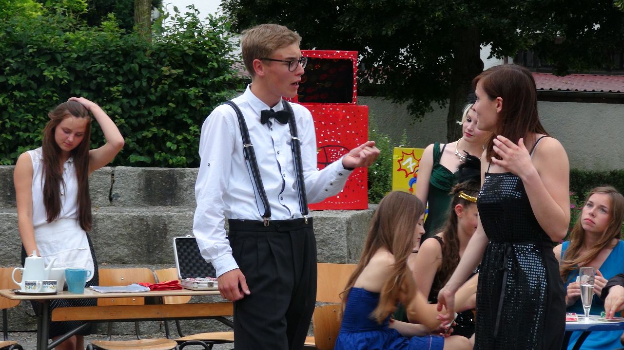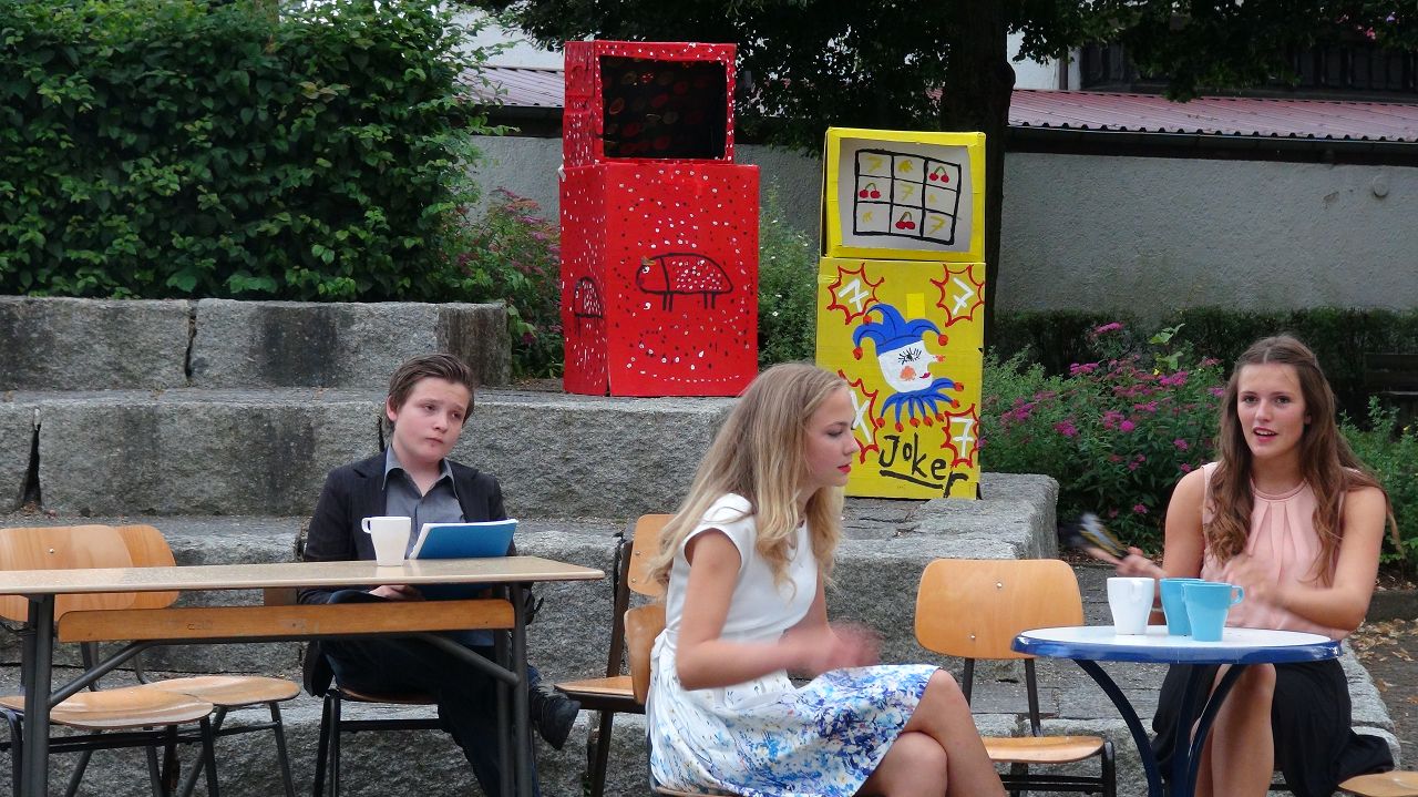 Bereits zur Uraufführung des von Madleen Haberstroh (J2) selbst verfassten Theaterstücks "Was ist die Welt und ihr berühmtes Glänzen?" am 3. Juli waren etwa 200 Besucher gekommen. Mehr als 20 Schauspieler, Statisten und Tänzer traten auf und begeisterten die Zuschauer. Ein Tanz zu "Hit The Road Jack", Rock und Pop-Musik sowie ein Auftritt der Sängerin "Adriana" mit "Hit The Road Jack" (von Ray Charles) erwarteten die Zuschauer.