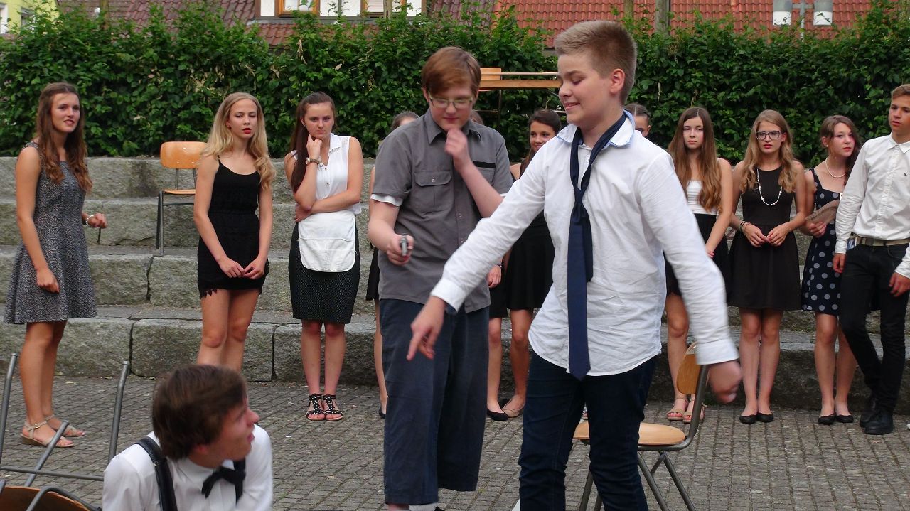 Die zweite Aufführung der "großen" Theater-AG am vergangenen Freitag wartete noch einmal mit Überraschungen auf: Nick Finke schlüpfte zum ersten Mal in die Rolle von Lillis Bruder und Herr Richter hatte - besonderer Gag zum Abschluss seiner Karriere als "Theaterlehrer" - seinen Auftritt als ... Richter!