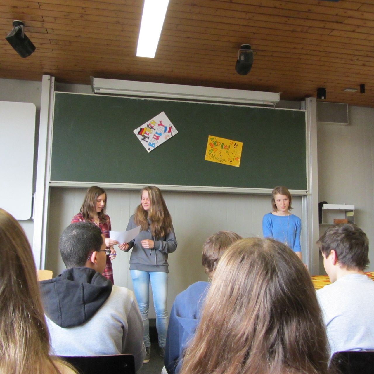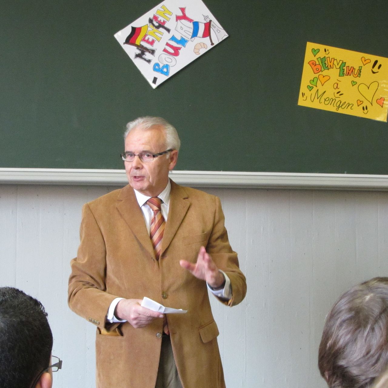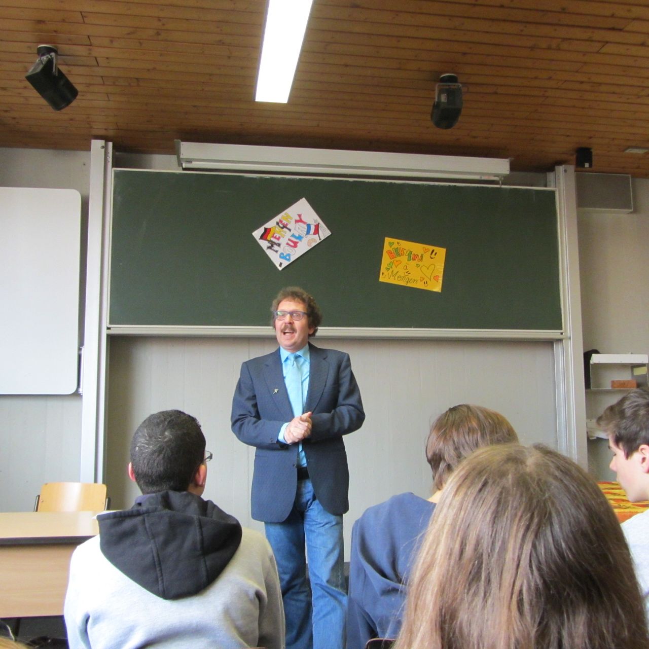 ... und dann gab es ein paar (kurze) offizielle Grußworte, zunächst von unserem stellvertretenden Schulleiter Herrn Prinz und anschließend - als Vertreter des Bürgermeisters - von Herrn Schlawinski, der den Ausschuss für die Städtepartnerschaft Boulay-Mengen leitet.