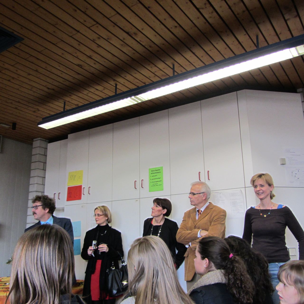 Erste Erkundungen im Schulhaus: Was bedeutet NWT? Seit wann ist dieser Raum umgestaltet? Wie heißt unser Schulleiter und welche Fächer unterrichtet er? An jeder der sieben Stationen gab es einige Fragen zu beantworten. Nach etwa einer Stunde kamen die Gäste wieder ins Ziel (R 303) und hatten schon einen kleinen Überbick über unsere Schule gewonnen.