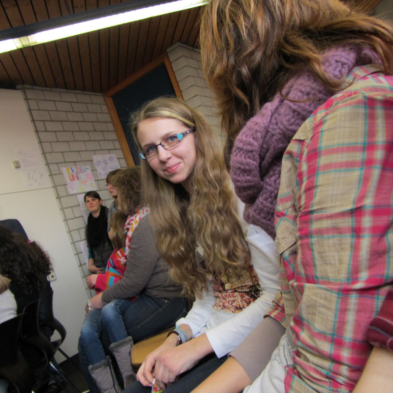 Während die Mädchen am ersten Nachmittag noch hübsch getrennt nach Ländern saßen, ...