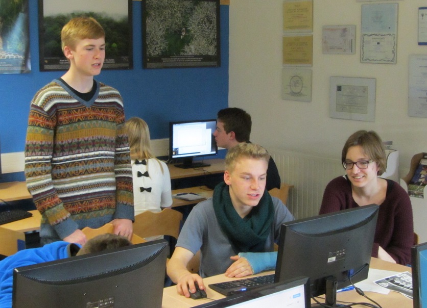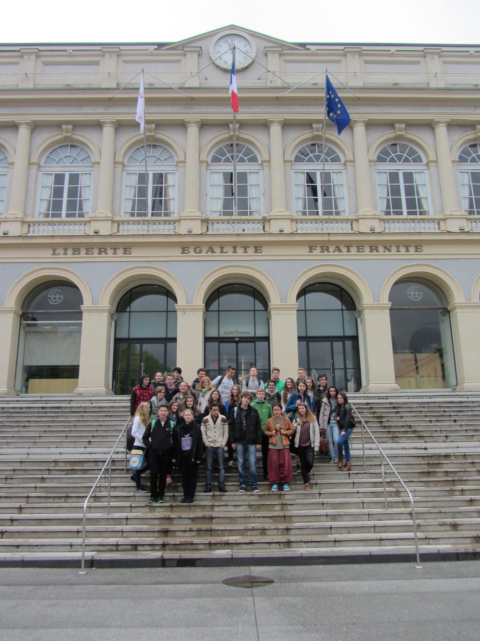 Nach dem Wochenende in den Familien gab es viel zu erzählen: Ausflüge nach Puy-en-Velay, Schlittschuhlaufen in St.Etienne, eine Fahrt mit einer Draisine, Rummel, Schwimmhalle, ein Besuch im Stadion, die Hobbys der Austauschschüler und viele Unternehmungen gemeinsam mit der Austauschfamilie oder anderen Corres machten das Wochenende für uns interessant und abwechslungsreich. Beim Erzählen in der ersten Stunde fiel uns auf, dass viele unserer französischen Corres vor und nach den Tagesausflügen stundenlang an ihren Hausaufgaben sassen. Hier der Bericht von David: