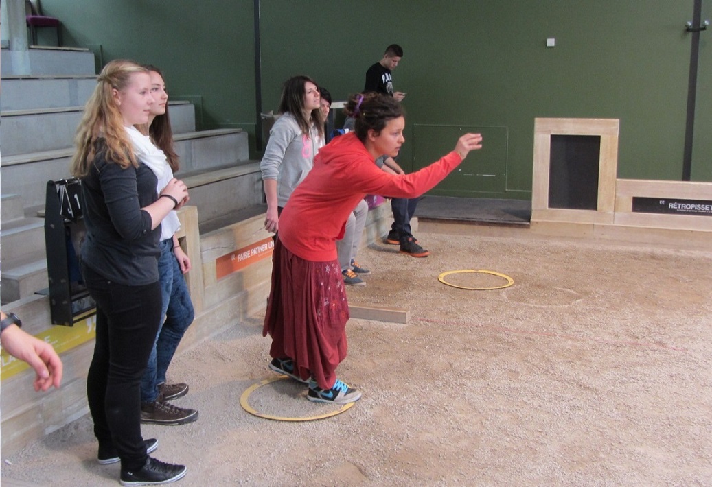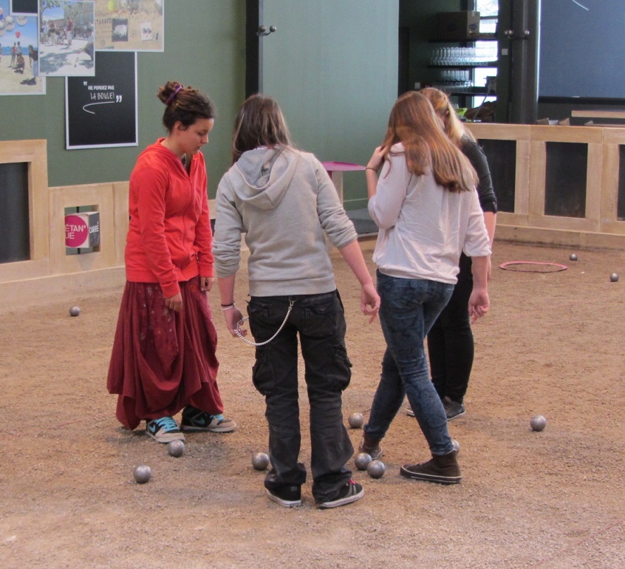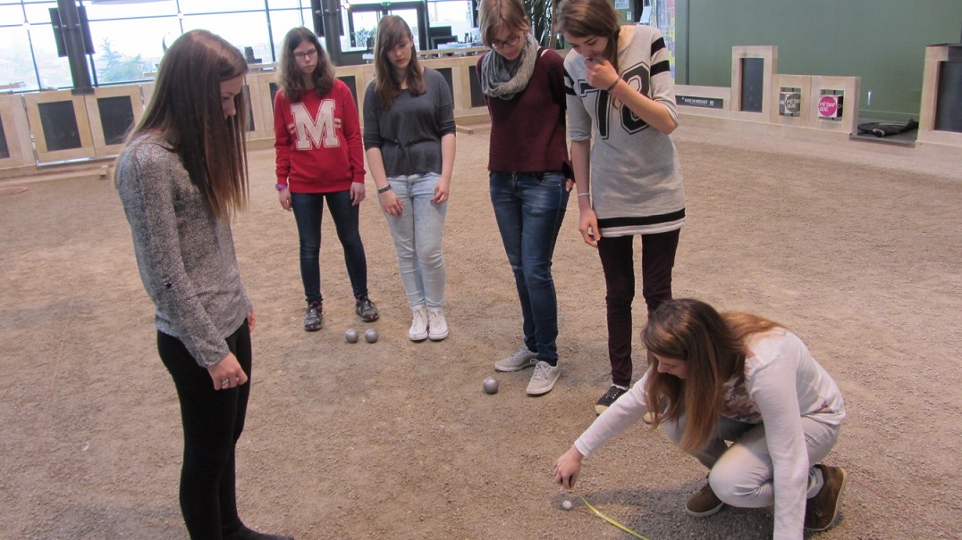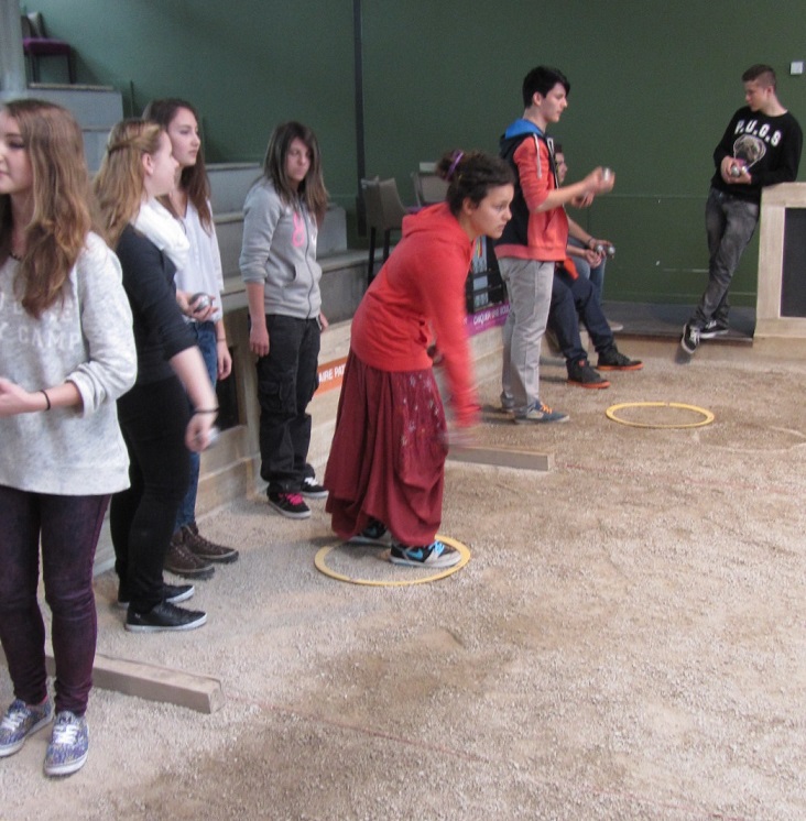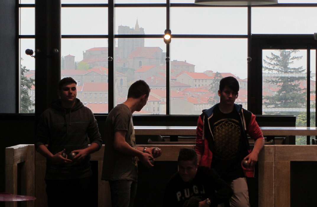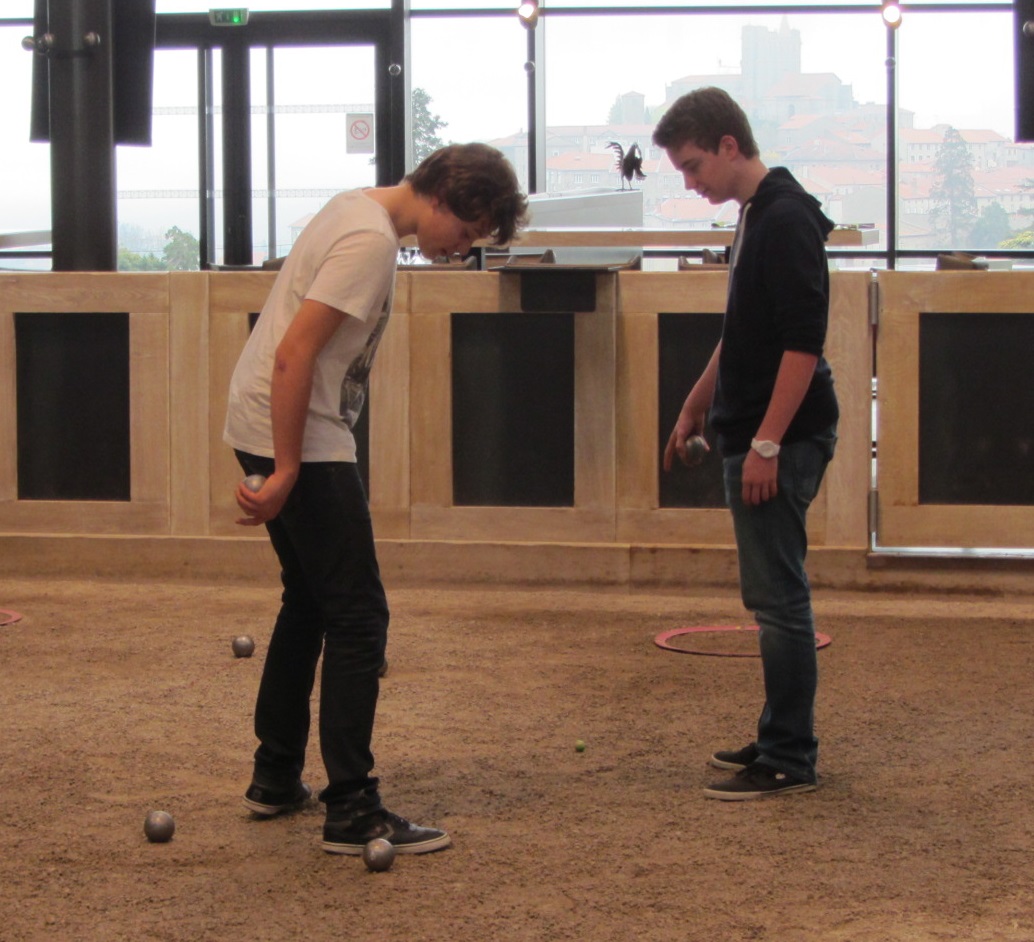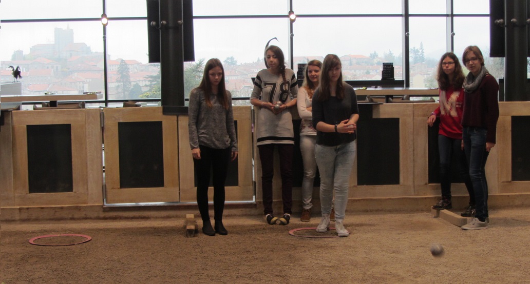 Den dritten Tag unserer Austauschwoche begannen wir mit einer Busfahrt durch die beeindruckende Loire-Schlucht und einer amüsanten Partie Boules in St.Bonnet-le-Château. Wir spielten in einer eigens dafür erbauten Halle, die sehr modern war und eine gute Sicht auf die Stadt bot. In Gruppen von vier bis sechs Personen traten jeweils Deutsche gegen Franzosen gegeneinander an. Echange joué - gespielter Austausch!