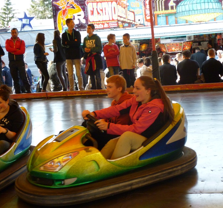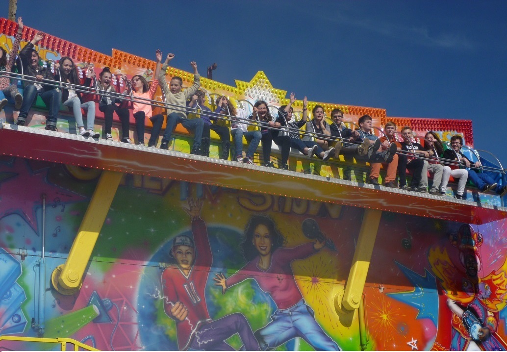 Der fünfte Tag unseres Austauschs, der Sonntag, war ein schöner Tag. Nicht nur in Anbetracht des wunderschönen Wetters: Il faisait beau! Die Familien machten unterschiedliche Sachen; manche verabredeten sich mit anderen Corres und verbrachten den Tag gemeinsam. Dazu bot sich z.B. der Rummel in einer Stadt ca. 20 km von Monistrol entfernt an. Hier gab es verschiedene Attraktionen wie auf einem deutschen Rummel: Karusselle, Gruselhäuser, noch mehr Karuselle, Boxautos und natürlich viel zu essen und trinken. Für die Boxautos legten wir unser Geld zusammen und fuhren endlose Runden, wovon einige heute noch sichtbare Erinnerungen in Form von blauen Flecken haben. Lustig war es natürlich trotzdem. Insgesamt war es ein schöner, letzter erholsamer Tag, bevor Montag wieder die Schule beginnt und wir die Deutschlehrer sein werden. Wir werden in verschiedenen Klassen am Collège den Unterricht halten, den wir am Freitag vorbereitet haben.