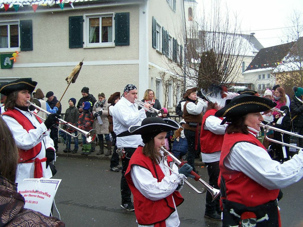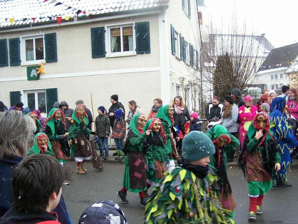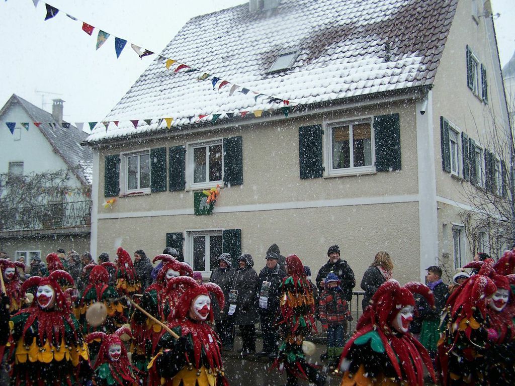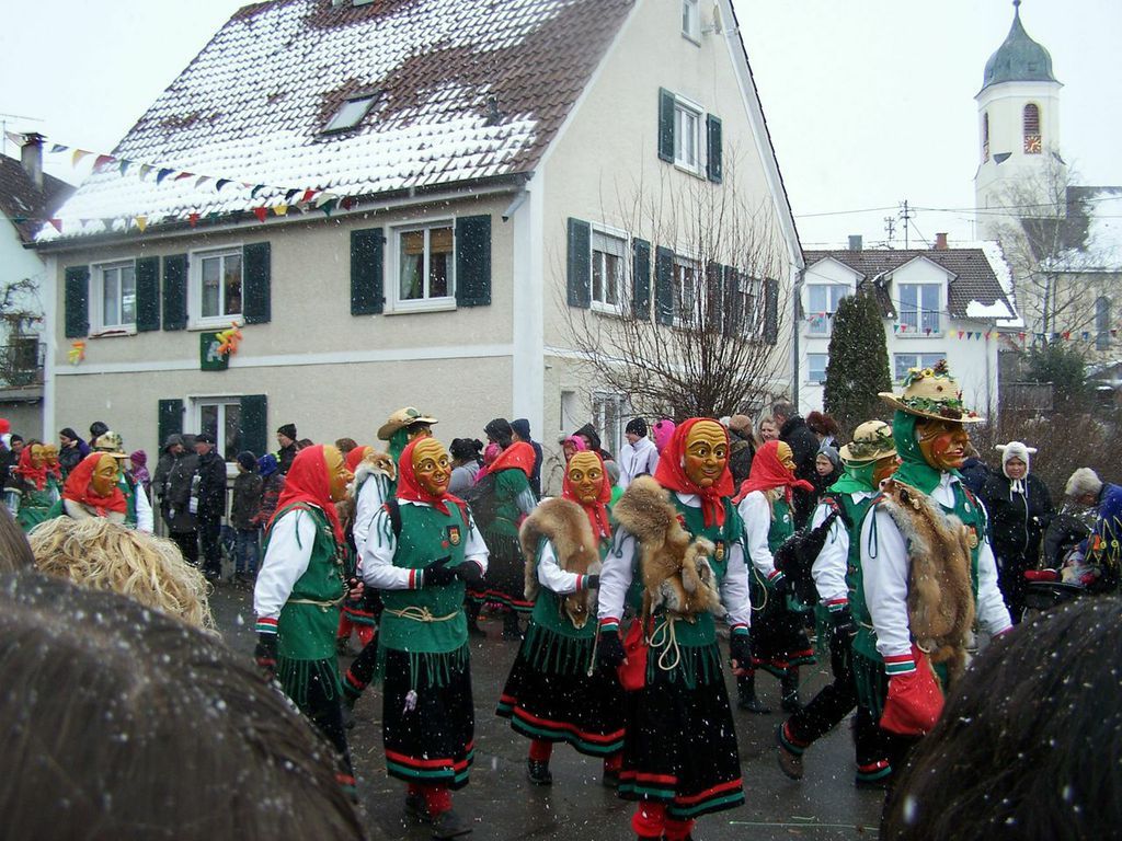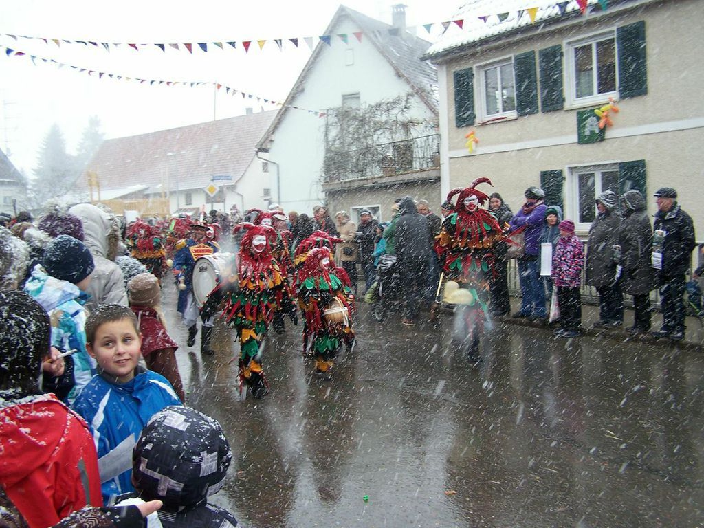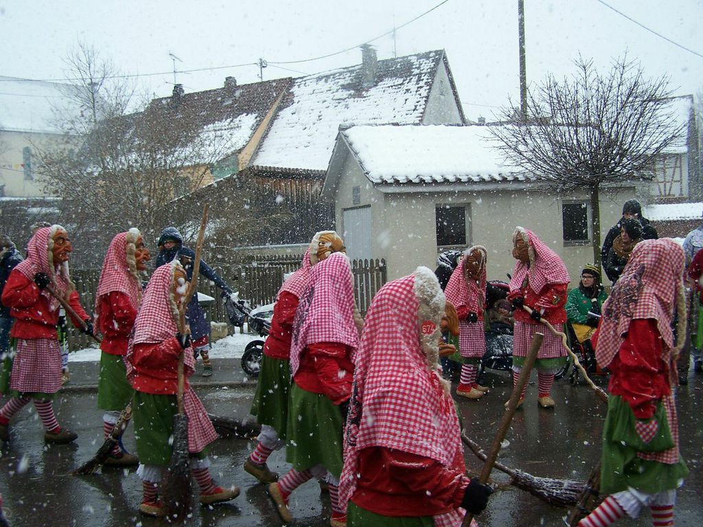 Am beeindruckendsten während der Austauschwoche war sicher der Umzug in Blochingen, wenn es auch manchen "viiiiiiel zu kalt" vorkam. Bei einsetzendem Schneegestöber standen die französischen Jugendlichen gemeinsam mit ihren Gastgebern am Straßenrand in Blochingen und sahen dem närrischen Treiben während des Umzugs zu.