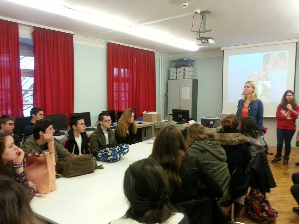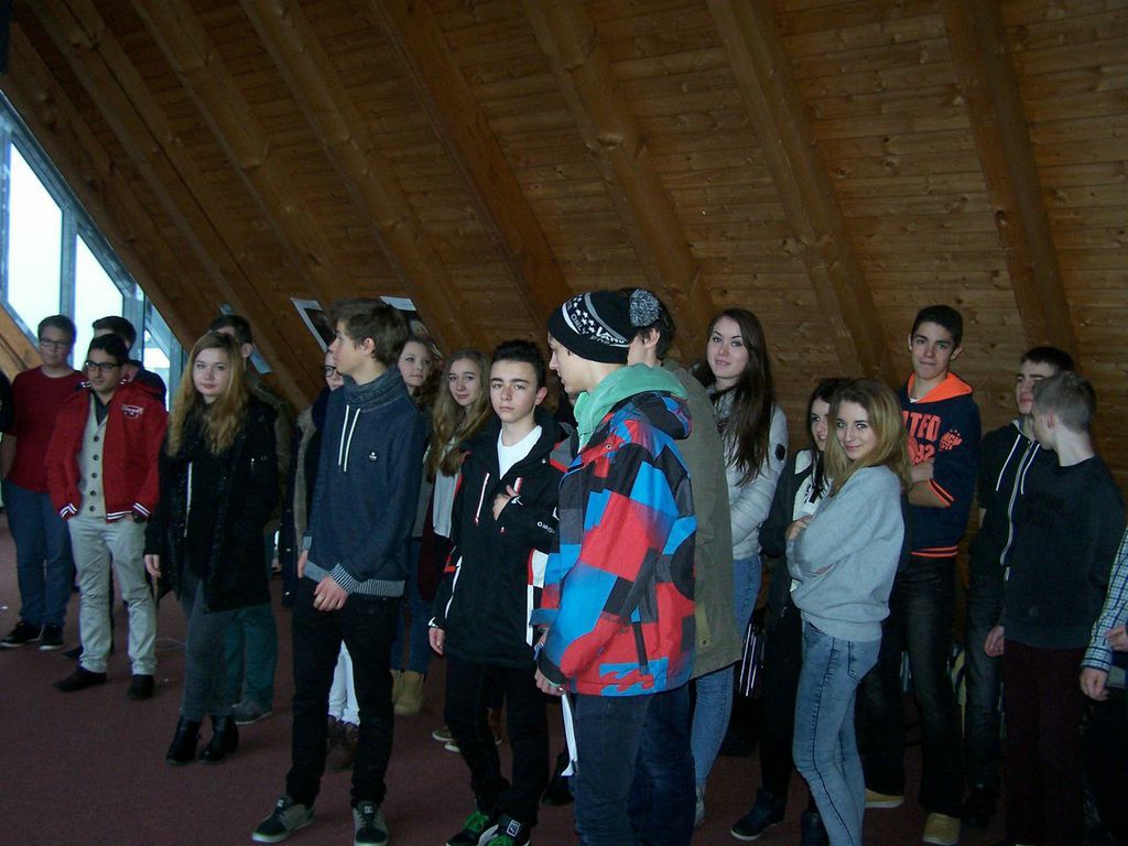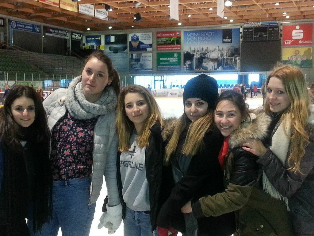Nach einem kleinen Empfang und Kennenlernspielen machen sie sich auf zu einer kurzen Stadtführung und schauen sich hinterher noch an, wie der Unterricht an unserer Schule läuft. Am Nachmittag brach die gesamte Gruppe zur Eissporthalle nach Ravensburg auf.