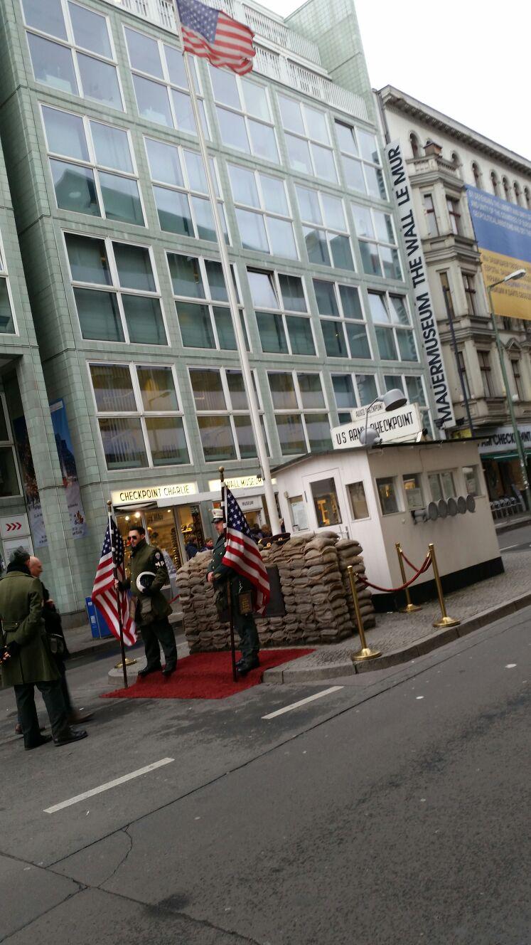An unserem letzten Tag vor der Heimreise, dem Donnerstag, marschierten wir an der East-Side Gallery entlang. Die ein kilometerlange Mauer regte jeden zum Nachdenken über die früheren Zustände an. Die Mauer, mit ihren Graffity-Motiven, war ein geeigneter Hintergrund für Fotos. Passend zur Trennung von Ost-West, besuchten wir den Checkpoint Charly. An diesem Punkt verlassen Sie den amerikanischen Sektor.