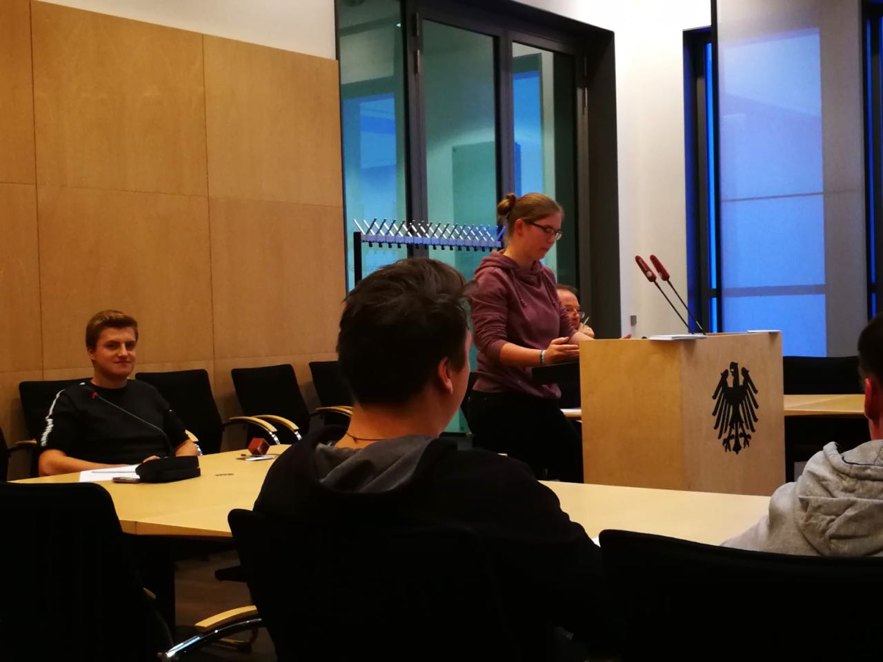 Nachdem wir unsere Mittagspause am Potsdamer Platz verbracht hatten, bekamen wir die Möglichkeit den Bundesrat zu besuchen. Hier durften wir zusammen mit einer anderen Schulklasse einen Gesetzesentwurf vorbereiten, nach Berücksichtigung der Interessen der Länder diskutieren und dann am Ende über unsere Entwürfe abstimmen. Sehr beeindruckend war hier, wie schwierig es war, eine Mehrheit für einen Entwurf zu bekommen und sich zu einigen.