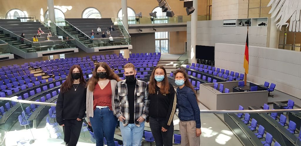 Den Mittwochmorgen verbrachte die J2 im Bundestag. Hier besichtigten sie den Plenarsaal, tauschten sich mit einer Mitarbeiterin von Herrn Bareiß aus und erkundeten die Kuppel des Reichstagsgebäudes. Felix, Timo und Bianka genossen zusammen mit Herrn Nowack das Mittagessen in der "Ständigen Vertretung". Am Nachmittag wurde in Kleingruppen die Hauptstadt weiter entdeckt. Abends war die Klasse im politischen Kabarett "Distel". Bei der Vorstellung "Die Qual der Wahl" wurde viel gelacht.