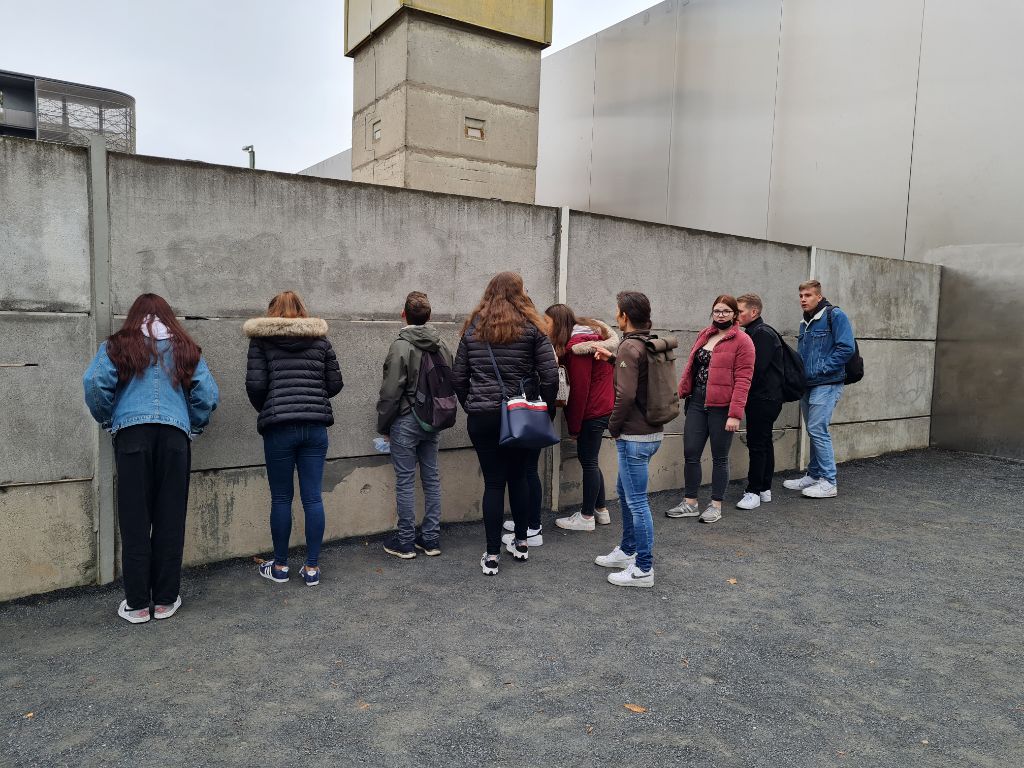 Am nächsten Morgen wurde gemeinsam gefrühstückt und ausführlich über den Tagesablauf informiert. Die Klasse lief entlang des Denkmals der Berliner Mauer an der Bernauer Straße. Direkt danach ging es zur Landesvertetung von Baden-Württemberg. Während des Vortrags konnten die Schüler*innen eine Brezel und etwas zu Trinken verzehren. Nach einer Mittagspause sowie einem freien Nachmittag, den die Schüler*innen selbst gestaltet haben, wurde die East-Side-Gallery besichtigt.