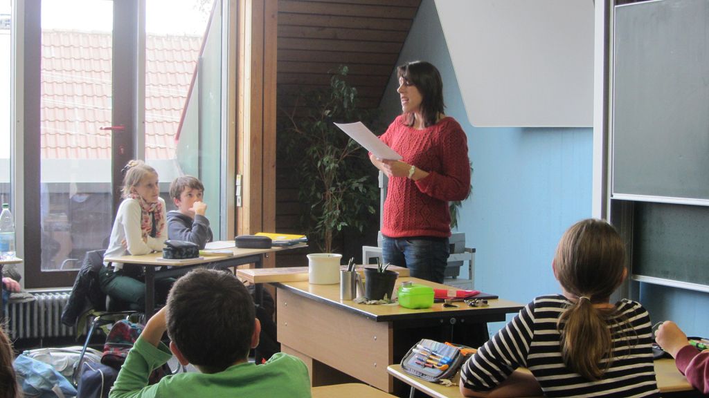 Hier gab es viel miteinander zu reden! Unter Anleitung von Frau Schultheiß, Leiterin der Schulsozialarbeit Mengen und Verantwortliche aller drei weiterführenden Schulen, versuchten die Schüler der 5a bei dieser Übung, ihre eigenen fünf Namenszettel wiederzubekommen. Gar nicht so leicht, wenn man dabei über fünf Ecken tauschen und immer im Kopf behalten muss, wer welche Namen auf seinen fünf Zetteln zu stehen hat ... Seit einigen Jahren schon ist die diplomierte Sozialpädagogin regelmäßig zu Gast in unseren Klassen, und zwar nicht erst dann, wenn Probleme auftauchen.
