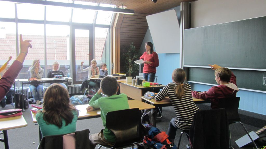 Frau Schultheiß hat bereits mit vielen Klassen unserer Schule gearbeitet. Hier noch ein paar Bilder von einem ihrer Besuche in der jetzigen Kl.7b, mit denen sie n dieser Stunde das Thema "Ich-Botschaften" einübte.
