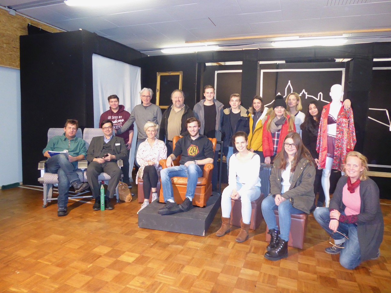 Auf dem Foto die Teilnehmer der Premierenklasse, die Schauspieler sowie einige Mitarbeiter des Theaters. Ganz links ist der Regisseur Hannes Stöhr zu sehen.
