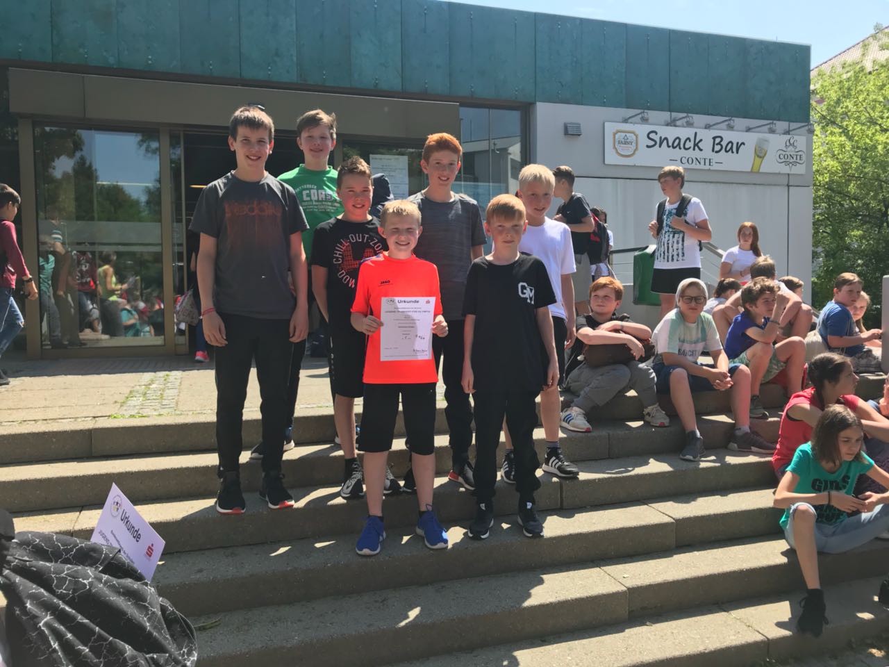 15 Schülerinnen und Schüler des Gymnasiums Mengen starteten am Montag, den 07. 05. bei "Jugend trainiert für Olympia". Bei diesem Wettkampf starteten 7 Mädchen und 8 Jungs aus den Klassen 5 und 6, die jeweils als Team gegen die anderen sieben bzw. acht Mannschaften antraten.