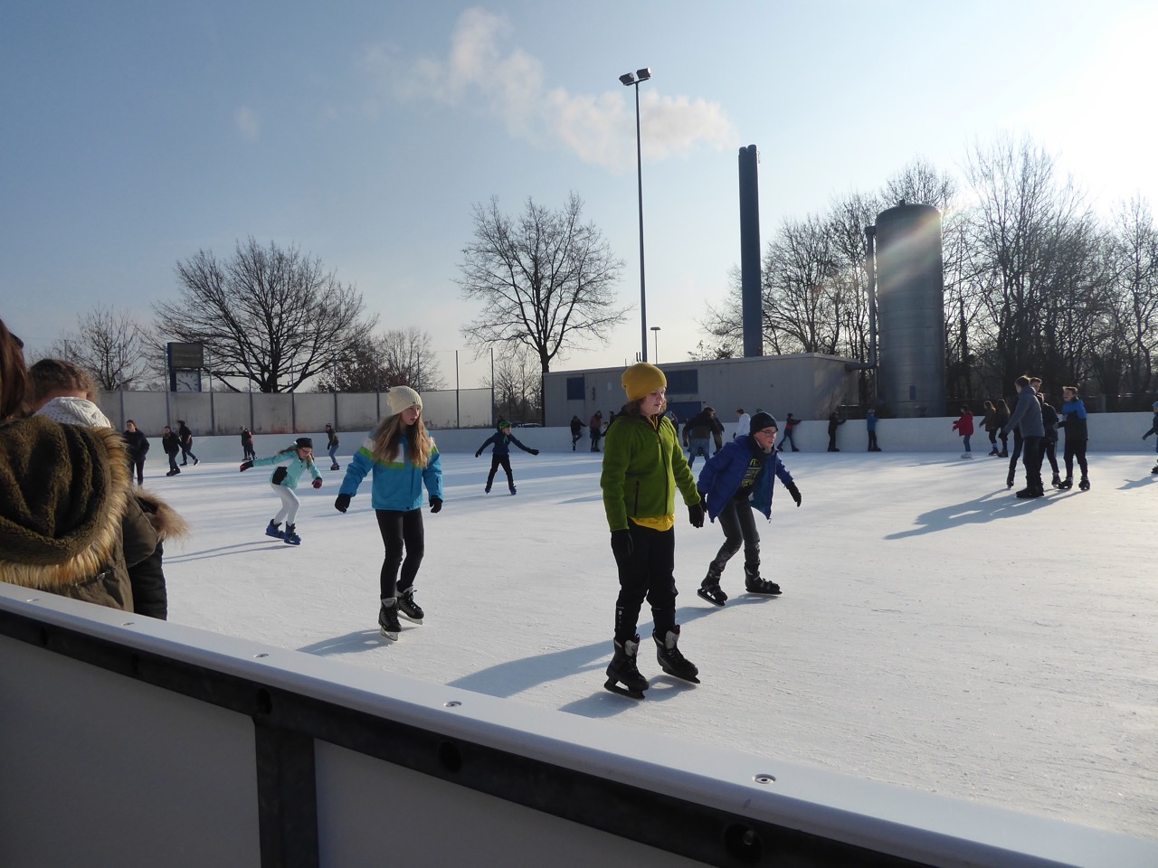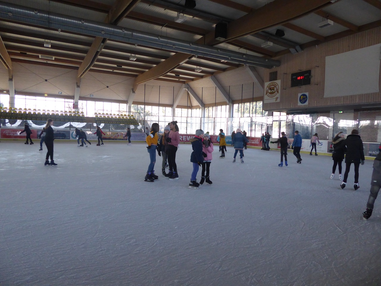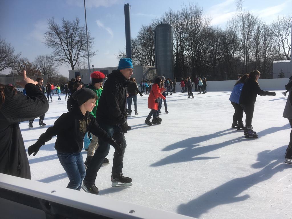 Direkt ging es in die Eissportanlage. Die Kinder mit selbst mitgebrachten Schlittschuhen durften direkt auf das Eis. Die Kinder ohne durften sich welche gegen eine kleine Gebühr ausleihen. Auch für Schüler ohne Erfahrung auf dem Eis was gesorgt, viele Freunde halfen einander.