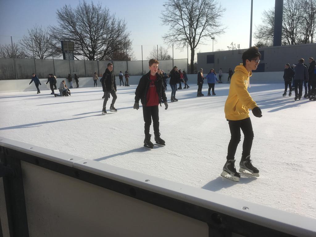 Am 21.02.2019 trafen sich die Kinder des Gymnasium Mengen, die sich für das Schlittschuhlaufen eingetragen hatten um 7:30 am Viehmarktplatz in Mengen. Drei Busse fuhren pünktlich wie geplant ab nach Ulm in die Eissportanlage. Schon die Busfahrt sorgte für gute Laune, es wurden Witze erzählt, es wurde gesungen und Musik gehört. Viele Fotos wurden gemacht.