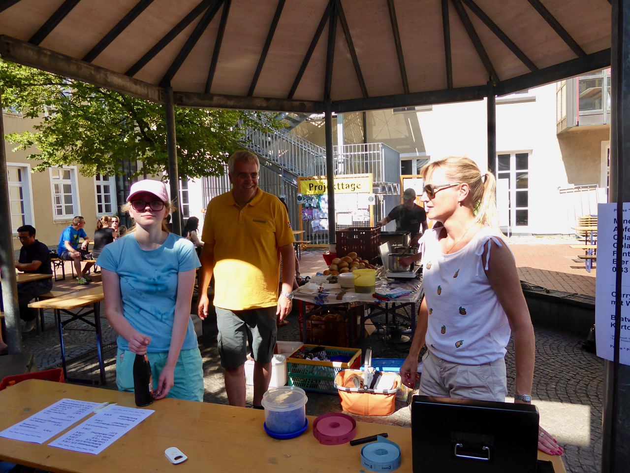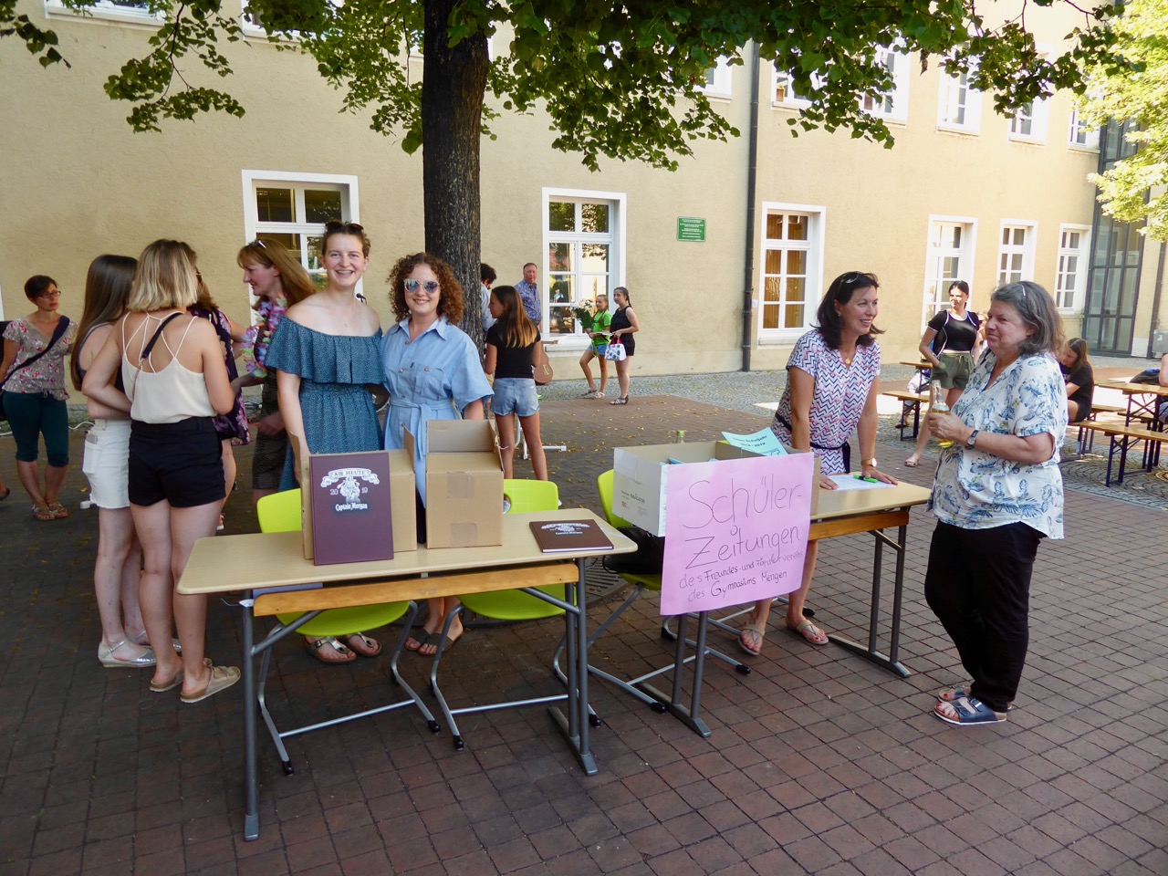 Ungewöhnlicher Termin, vertraute Veranstaltung: Am Donnerstag, dem 25.Juli luden Gymnasium und Förderverein zum alljährlichen Schulfest in den Innenhof der Schule ein. Wie jedes Jahr präsentierten die Schüler, was sie in den Projekttagen gemacht hatten.