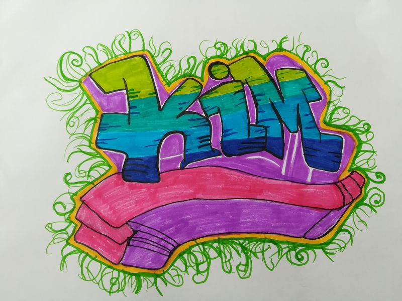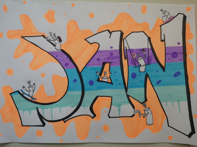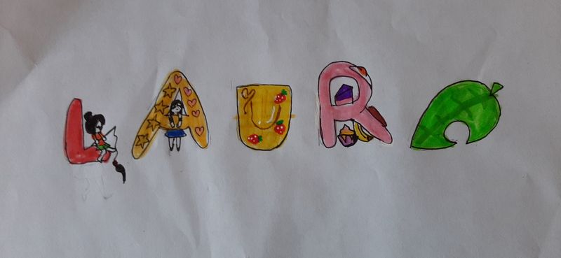 Aufgabe 1 lautete:Gestaltet euren Namen. Eurer Kreativität sind dabei keine Grenzen gesetzt! Ihr könnt verschiedene Materialien nutzen.