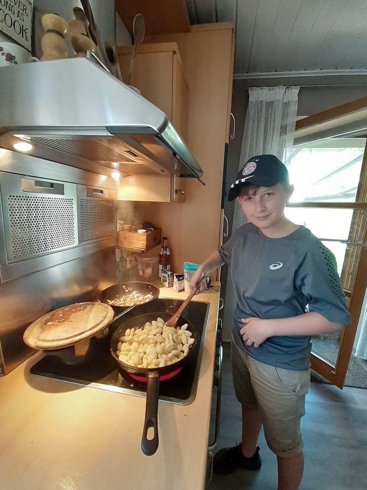 Challenge-Aufgabe 4 passte hervorragend zum verlängerten Wochenende: Die Kinder sollten sich in der Küche nützlich machen, selber kochen und backen (und hinterher aufräumen !) und ein Foto von ihren kreativen Gerichten einsenden. Hier ein paar Fotos davon: