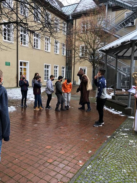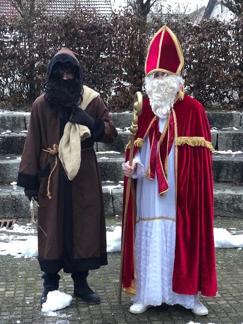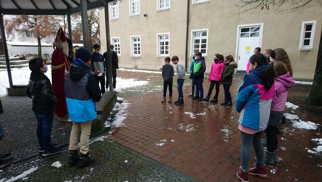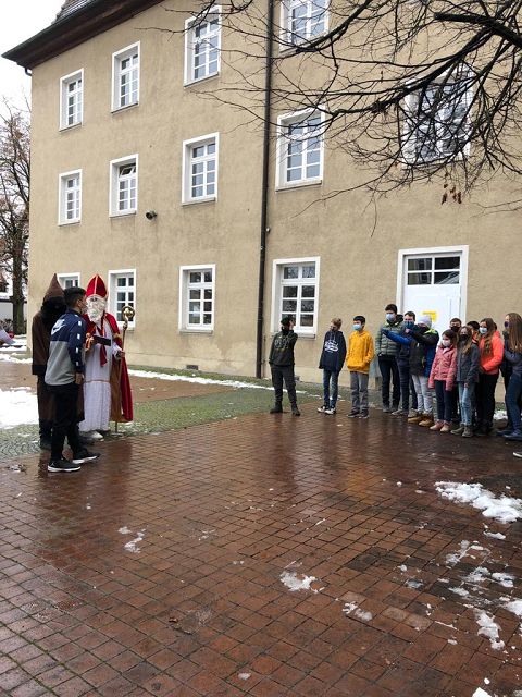 Anfang Dezember (07/08.12.20) besuchten uns wieder der Nikolaus und Knecht Ruprecht am Gymnasium. Wegen der Corona Pandemie konnten die beiden dieses Jahr nicht durch die Klassen ziehen, sondern die Klassen gingen zu ihnen in den Pausenhof. Dennoch waren die beiden wieder bestens informiert darüber, wie sich die einzelnen Klassen verbessern könnten.