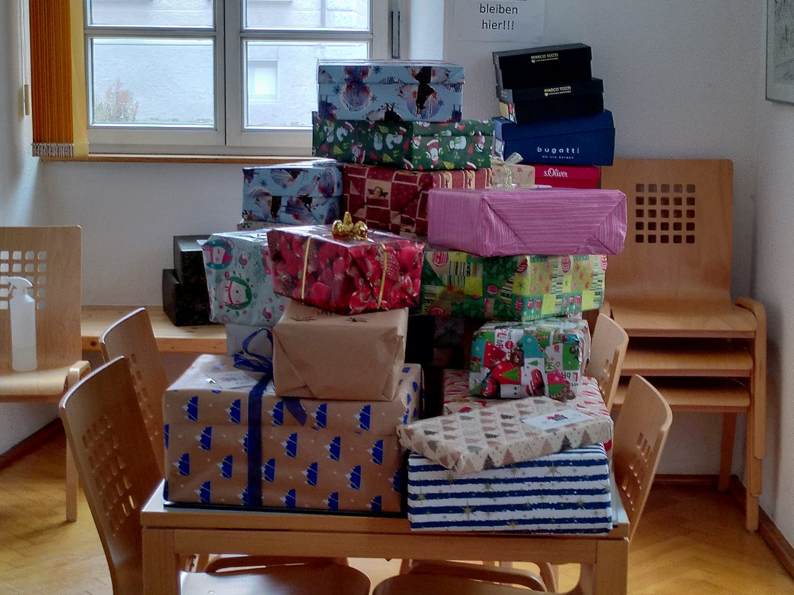 Die SMV hat die Geschenke zur Sammelstelle gebracht. Von dort werden sie demnächst ihre große Reise antreten, damit sie pünktlich zu Weihnachten vor Ort sind und für strahlende Kinderaugen sorgen können!