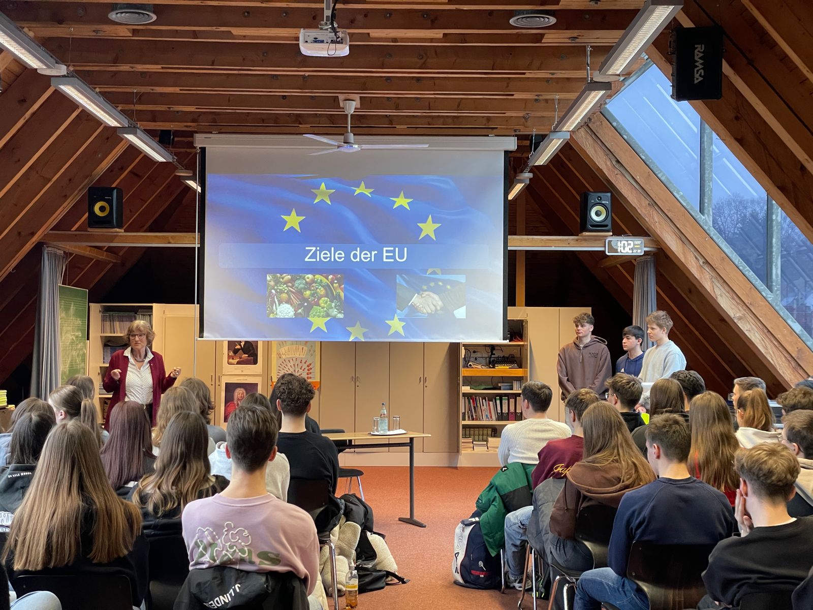 Viele weitere Fragen drehten sich vor dem Hintergrund des EU-Schulprojekttags um die Rolle der Europäischen Union. Frau Bogner-Unden war es wichtig zu betonen, dass z.B. Verbraucherschutz auf EU-Ebene ein wichtiges Thema ist, weil durch die EU einheitliche Standards eingeführt wurden.