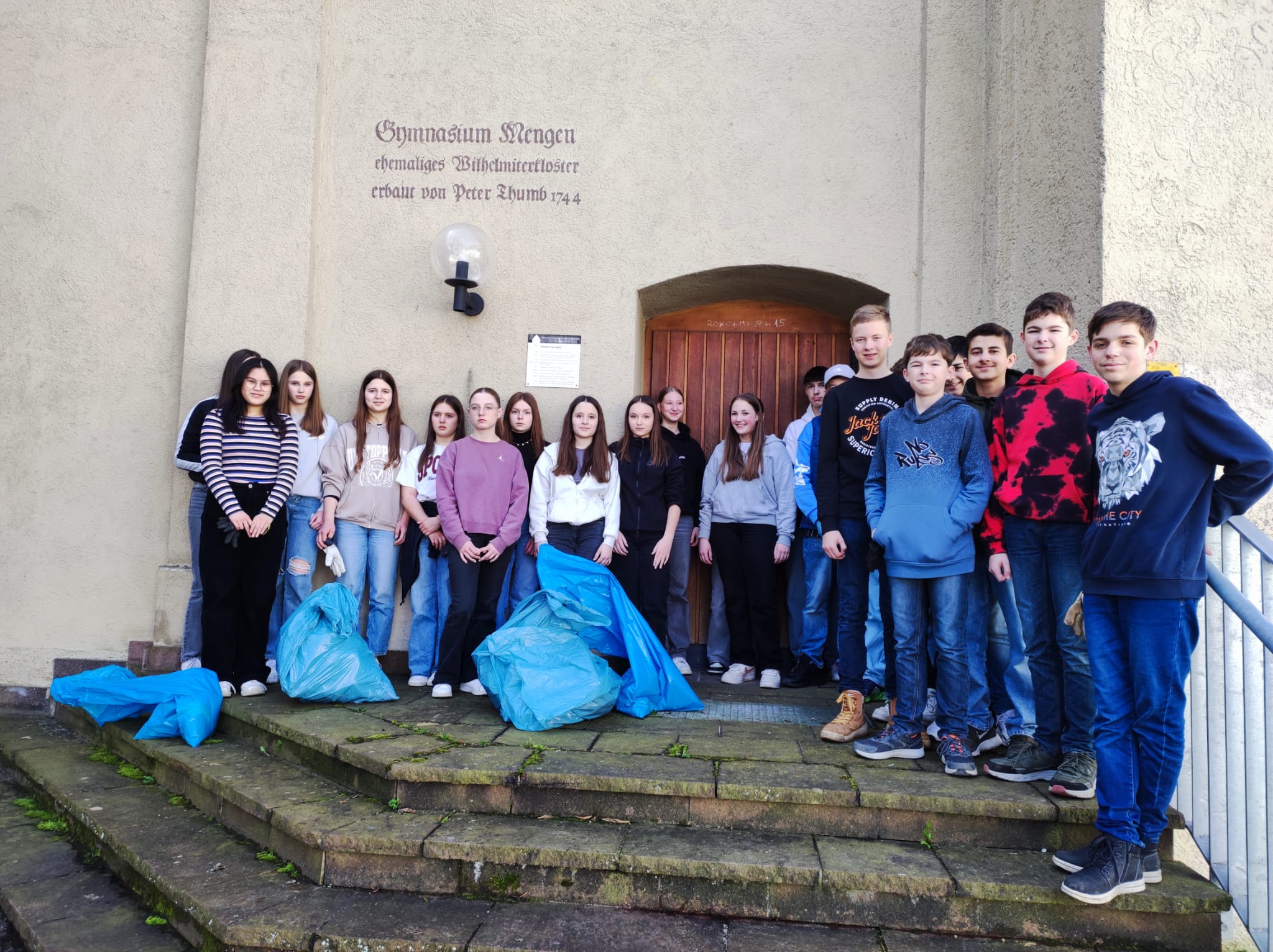 Im Zuge unserer Aktion "Klimafasten", die zwischen den Fasnetsfeien und den Osterferien lief und zum Ziel hatte, sich in verschiedenen Bereichen für das Klima einzusetzen, waren einige unserer Klassen am letzten Schultag vor den Osterferien in Mengen und Umgebung unterwegs, um Müll zu sammeln.