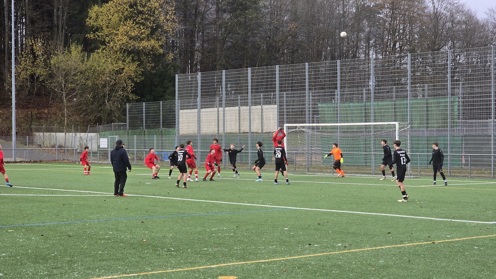 In Pfullendorf mussten die Älteren am Tag drauf bei noch kälteren Temperaturen und Schnee spielen. Dafür gab es nur eine Begegnung gegen das Staufer-Gymnasium vor Ort. Das Team um Kapitän Paul Horst (10a) fing beeindruckend stark an und konnte sich viele gute Chancen herausspielen. Leider fehlten das Glück und die nötige Präzision im Abschluss, sodass keine Treffer gelingen konnten. Umso bitterer, dass einzelne Chancen von den Pfullendorfern genutzt wurden und somit das scheinbar schwächere Team zur Halbzeit 2:0 führte. In der zweiten Halbzeit konnten unsere Kicker direkt wieder Druck machen, sodass es zum Anschlusstreffer von Alexander Reiser (9a) kam. Im weiteren Verlauf wurden die Gegner dann immer stärker und übernahmen das Spielgeschehen. Trotz starker kämpferischer und läuferischer Leistung der gesamten Mannschaft konnten einzelne Gegentore gegen Ende nicht verhindert werden. Insgesamt war es ein tolles und spannendes Spiel, bei dem sich unser Team gut geschlagen hat, so auch die Meinung von den betreuenden Lehrkräften Herrn Callies und Herrn Freiberg.