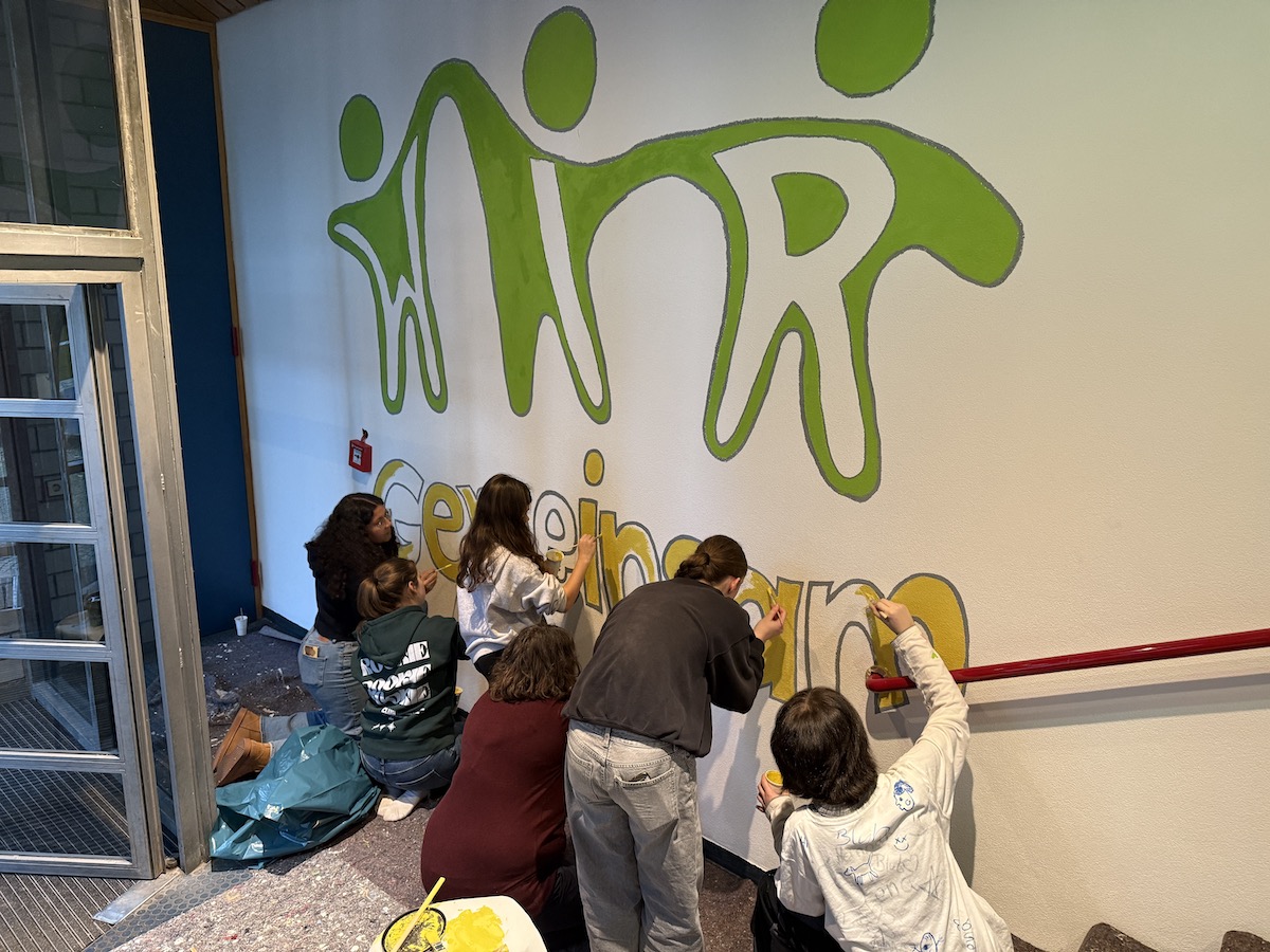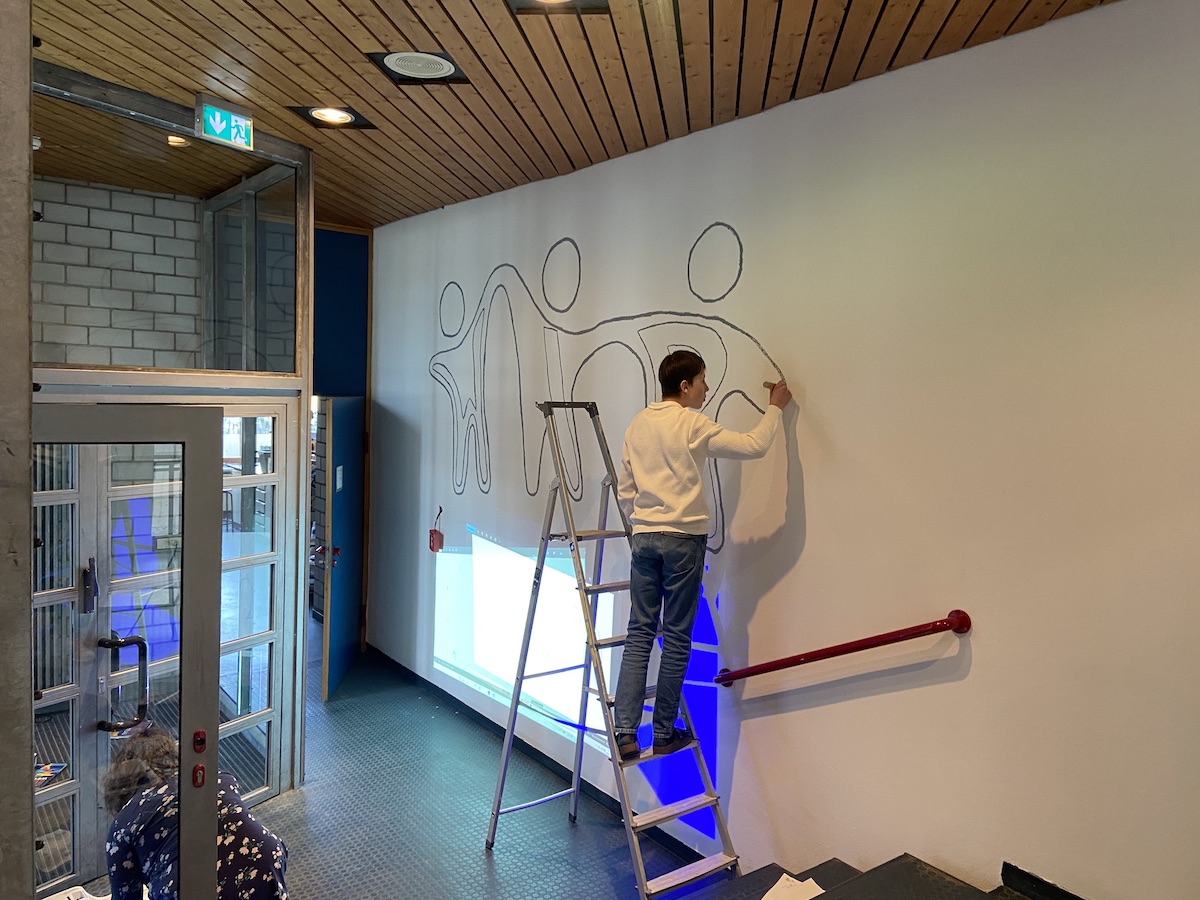 Im ersten Schritt hat die AG, die sich aus einigen ambitionierten 8. Klässlern uns 5. Klässlern, zusammensetzt, den Eingangsbereich, der uns lange zu dunkel erschien, vorgenommen.
