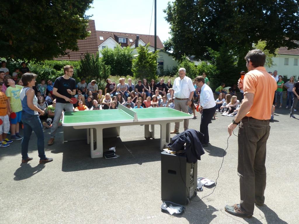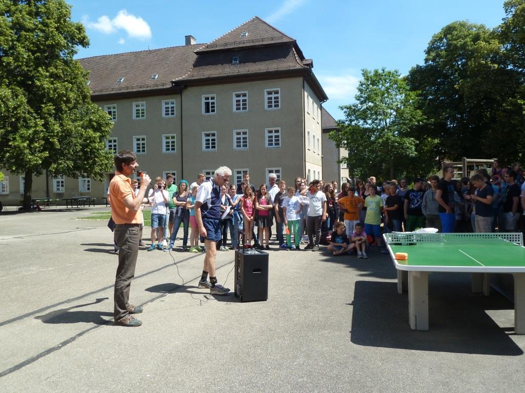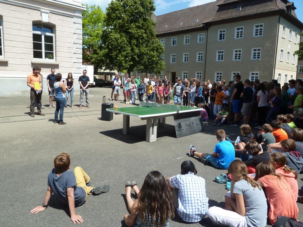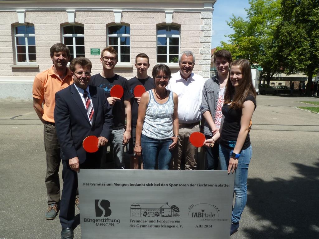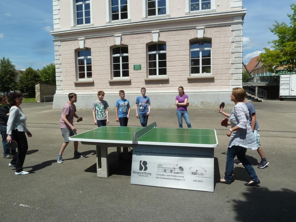 Die Abiturienten des Jahrgangs 2014 haben ein ganz besonderes Denkmal gesetzt. Gemeinsam mit dem Förderverein des Gymnasiums und der Bürgerstiftung Mengen finanzierten sie eine Tischtennisplatte auf dem Schulhof des Gymnasiums. Im Rahmen einer Schulversammlung und eines Tischtennisturniers auf dem Pausenhof wurde die Tischtennisplatte feierlich eingeweiht.