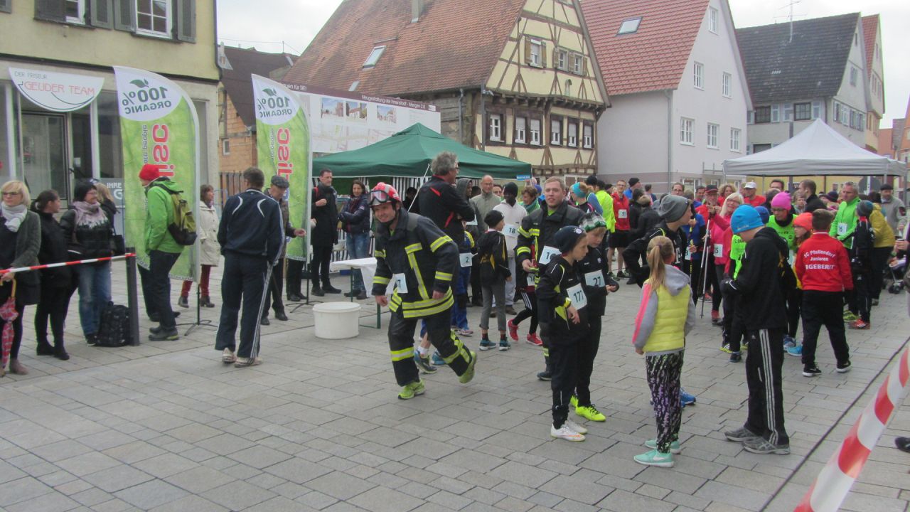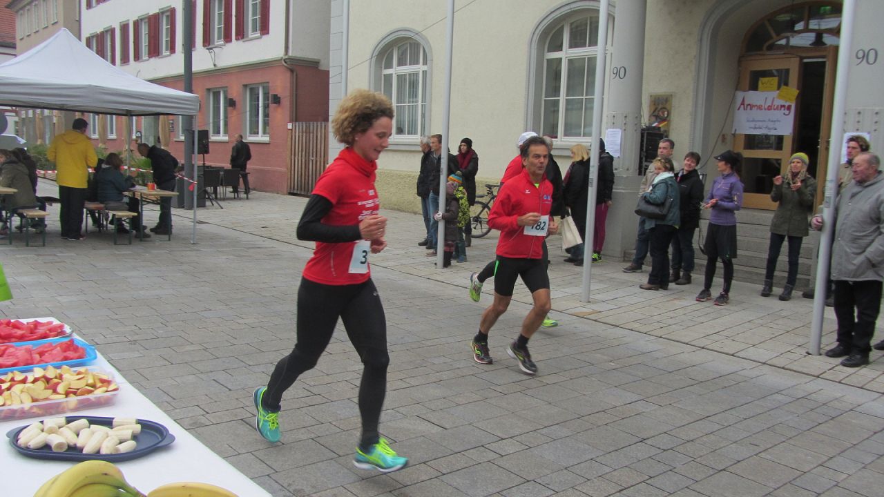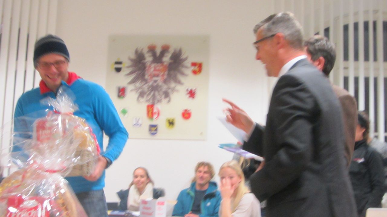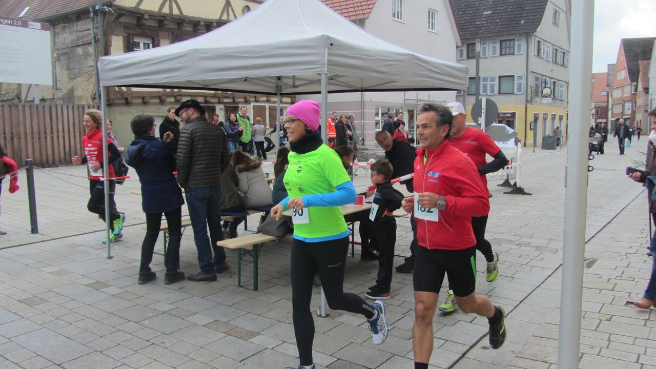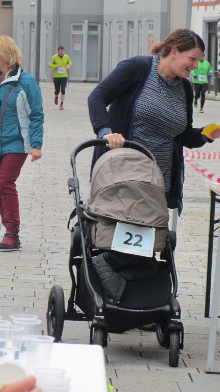 Währenddessen drinnen im Sitzungssaal noch immer eifriges Treiben: Läufer, die fertig sind, holen ihre Urkunden und kleinen Geschenkle ab, andere melden sich für den zweiten Start an, der von Bürgermeister Herrn Bubeck gestartet wird.