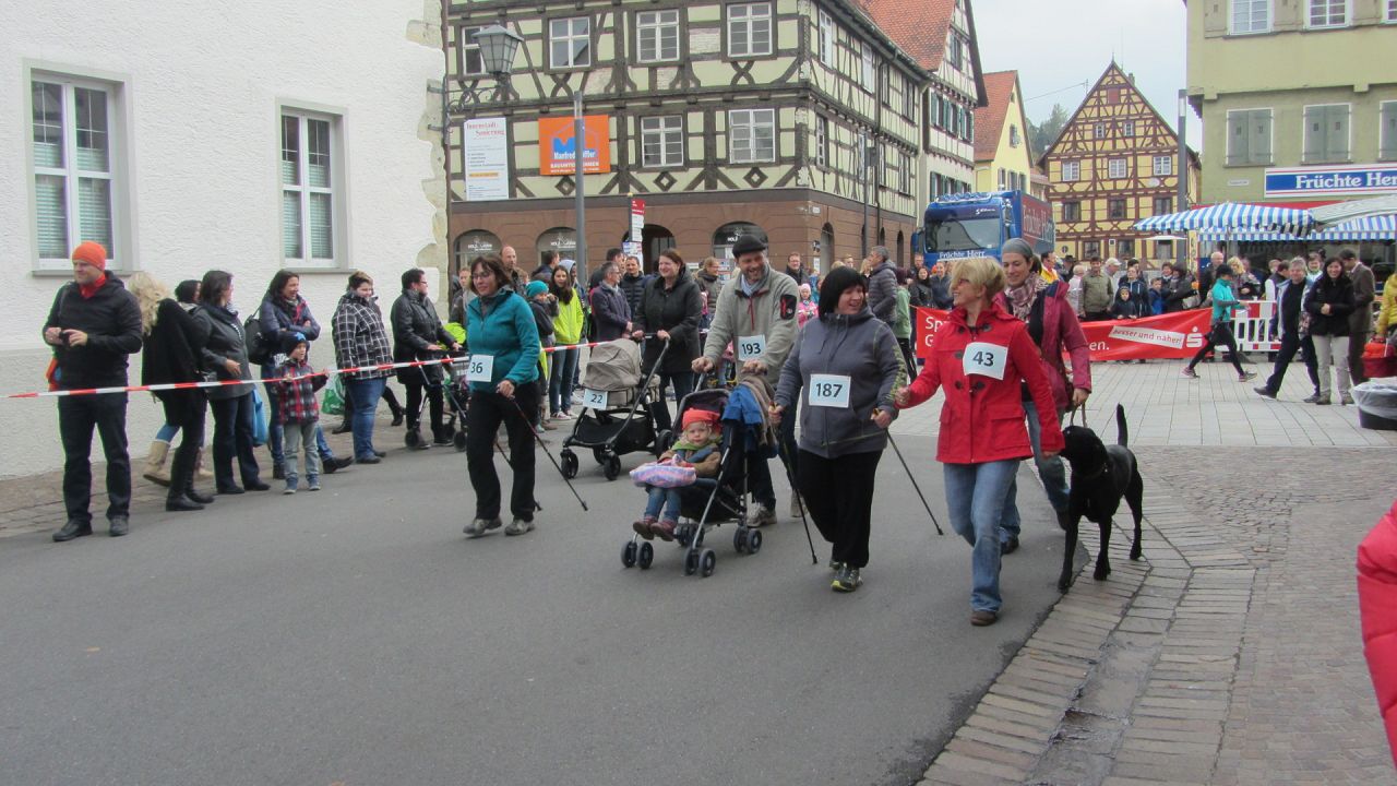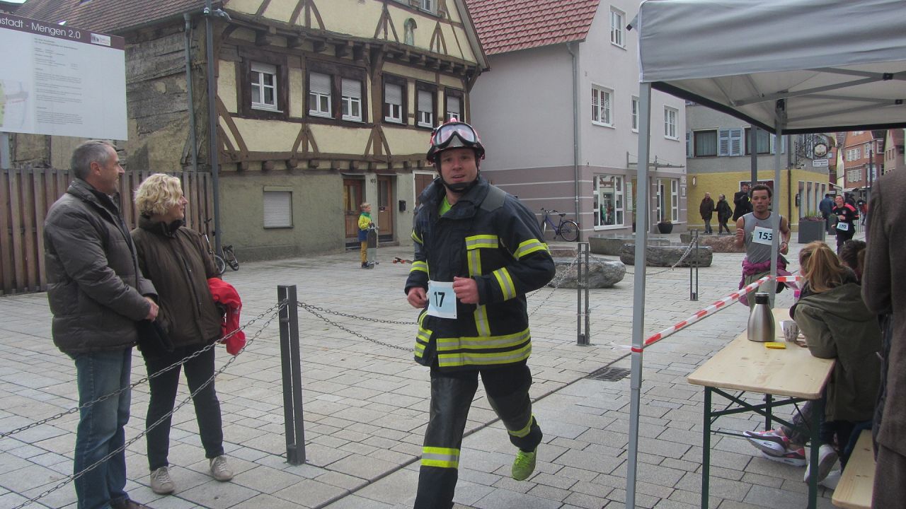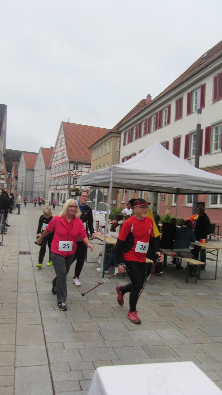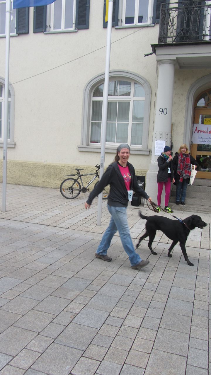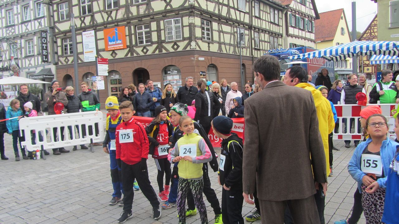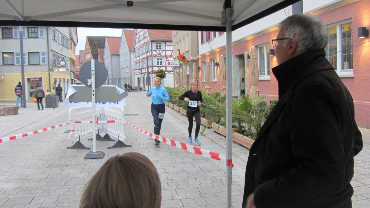 Währenddessen drinnen im Sitzungssaal noch immer eifriges Treiben: Läufer, die fertig sind, holen ihre Urkunden und kleinen Geschenkle ab, andere melden sich für den zweiten Start an, der von Bürgermeister Herrn Bubeck gestartet wird.