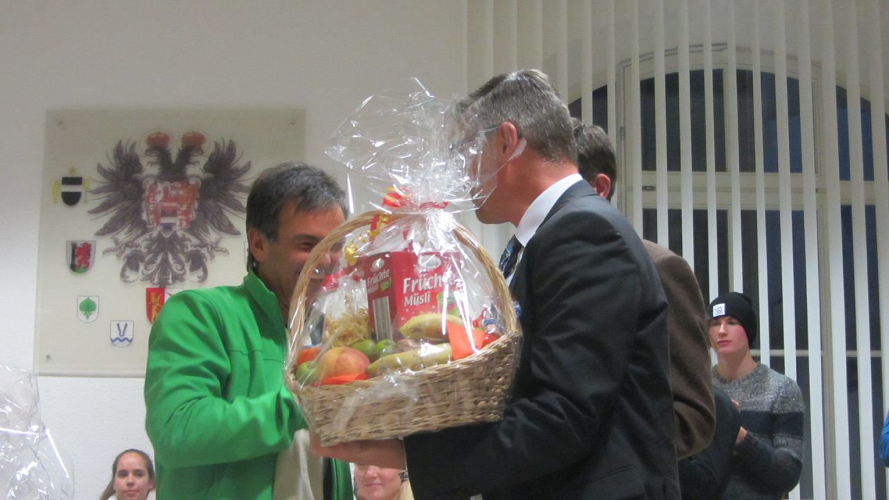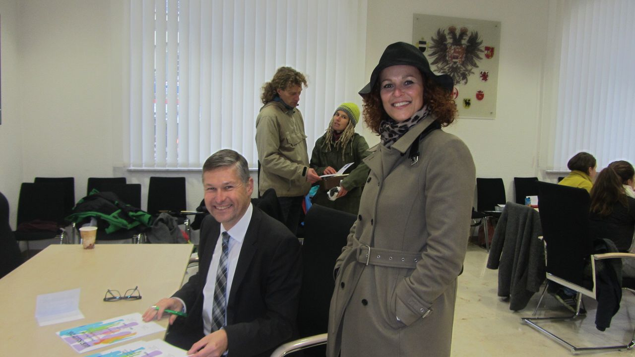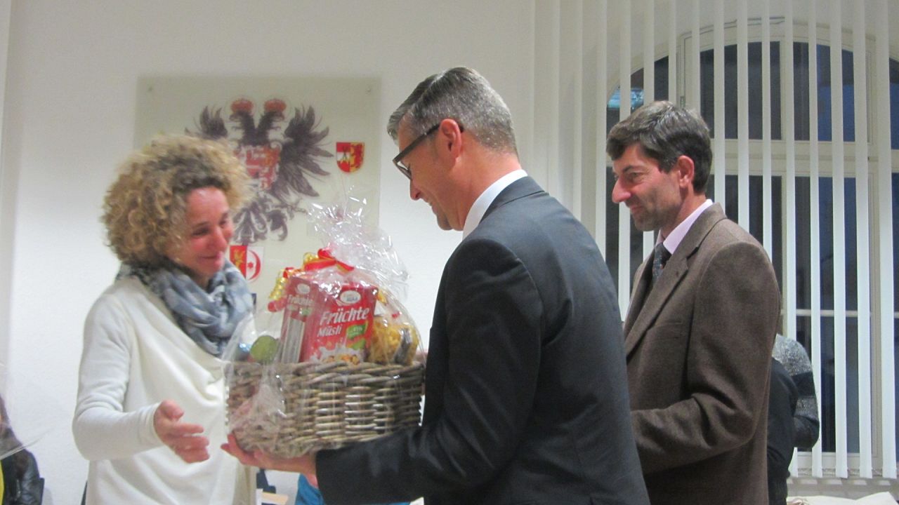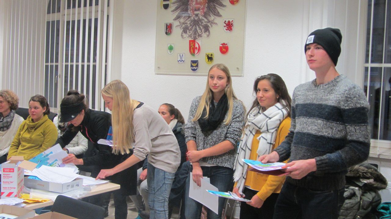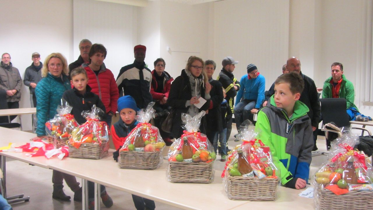 Währenddessen drinnen im Sitzungssaal noch immer eifriges Treiben: Läufer, die fertig sind, holen ihre Urkunden und kleinen Geschenkle ab, andere melden sich für den zweiten Start an, der von Bürgermeister Herrn Bubeck gestartet wird.