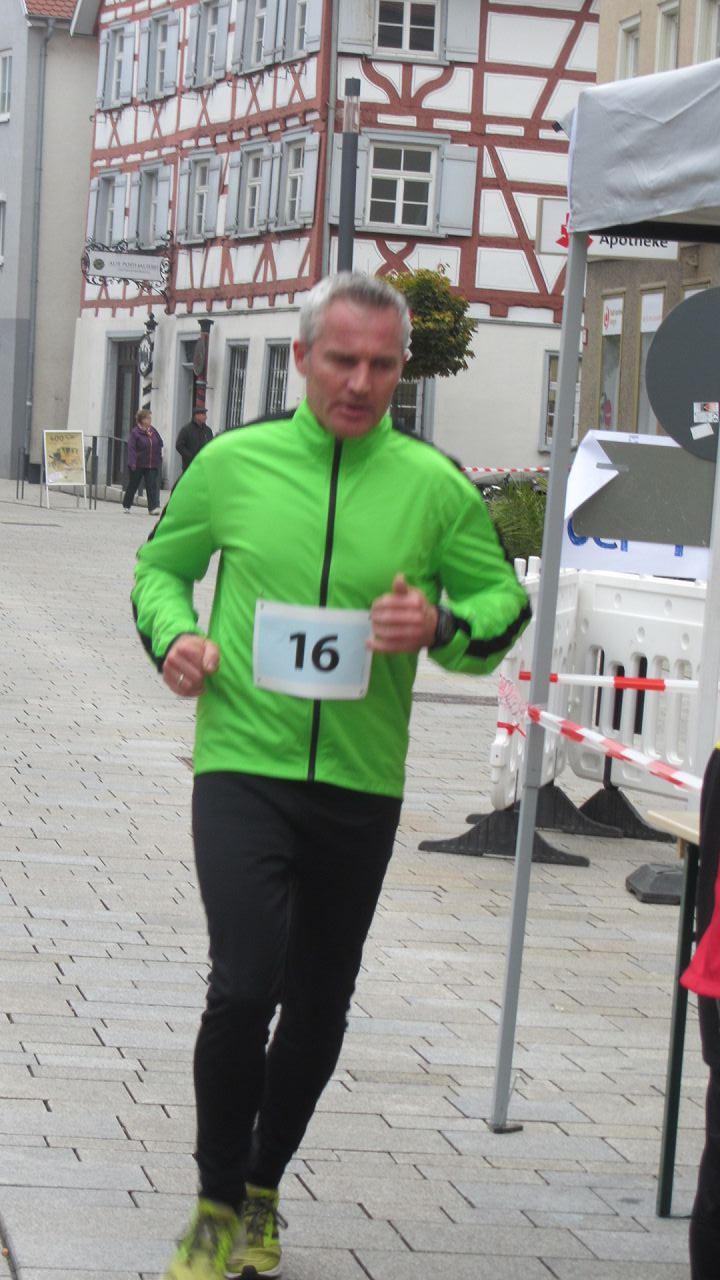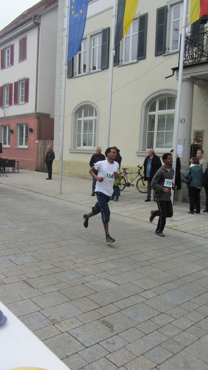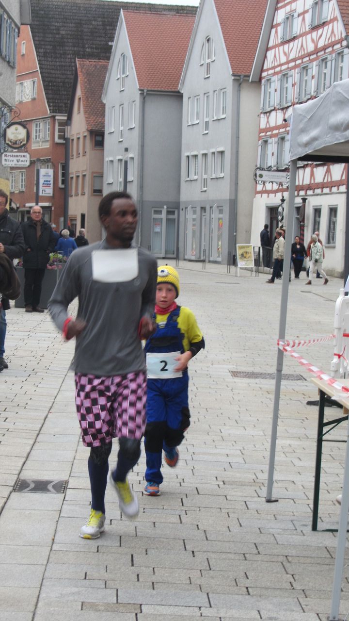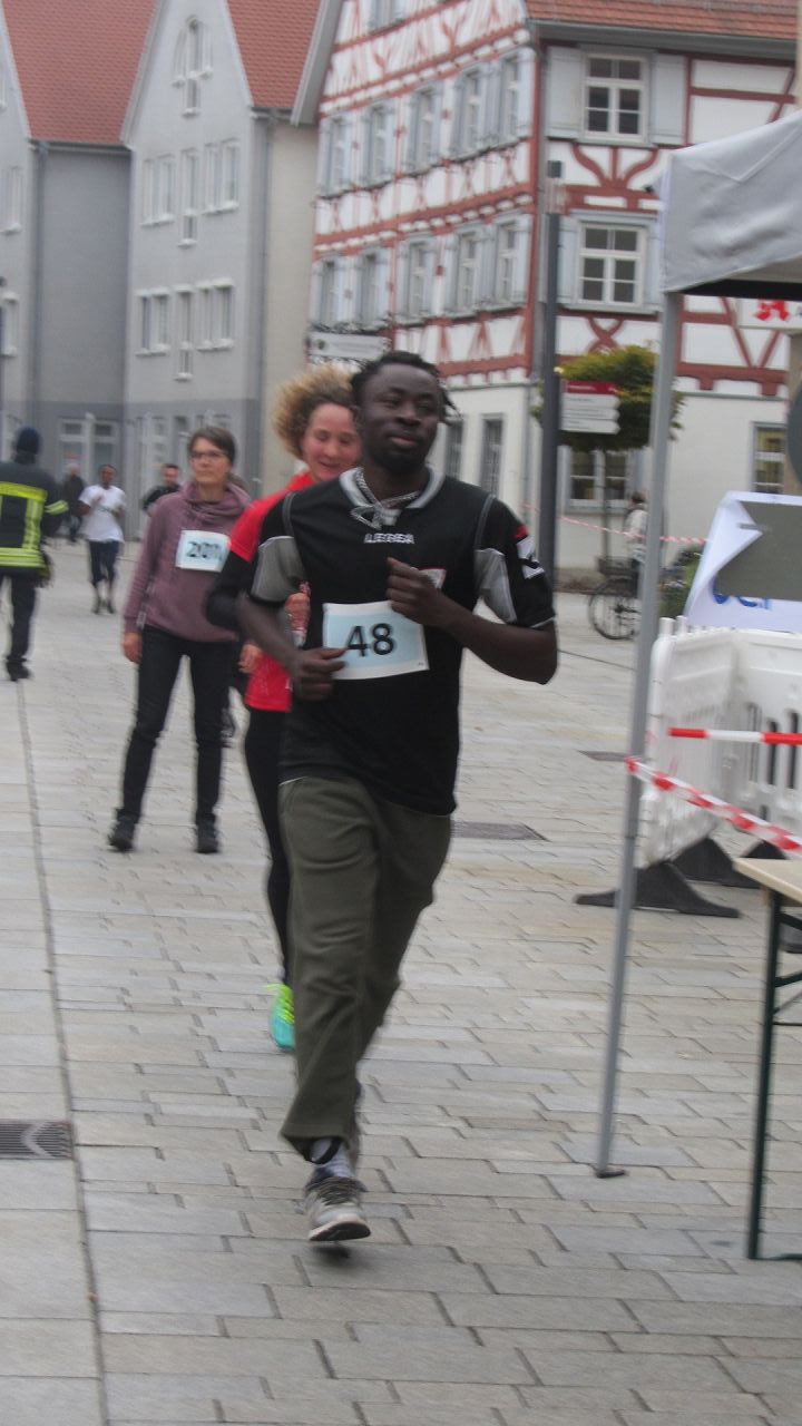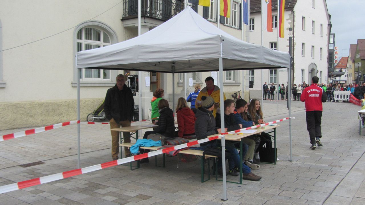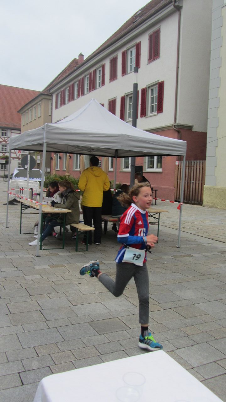 140 Läufer zu Höchstleistungen. Der Moderator gab fleißig Runde für Runde die Ergebnisse durch und sparte nicht an motivierenden Sprüchen. Der Elternbeirat hielt stets Getränke und leckeres Obst, hüsch portioniert zur Stärkung bereit. Petrus ließ es nur anderswo tröpfeln, aber nicht ums Mengener Rathaus herum. Die Streckenposten motivierten, die Sanis patrouillierten ... Und so kam es, dass die Läufer liefen und liefen und liefen ... Die Rundenzähler kamen manchmal aus dem Staunen gar nicht heraus. Zwei Fünftklässler, Leon F. und Kristina waren vom ersten Start um 14 Uhr an dabei und ließen sich gar nicht mehr bremsen. 27km war ihr Tagesrekord bei den Kindern und Jugendlichen an diesem Tag. Auch die Erwachsenen ließen nicht locker und brachten die Mengener Rathausrunde von ca.1km Runde um Runde hinter sich. Paul Steinacher aus Herbertingen brachte es auf ganze 40km und stellte damit den Rekord unter den Erwachsenen auf.
