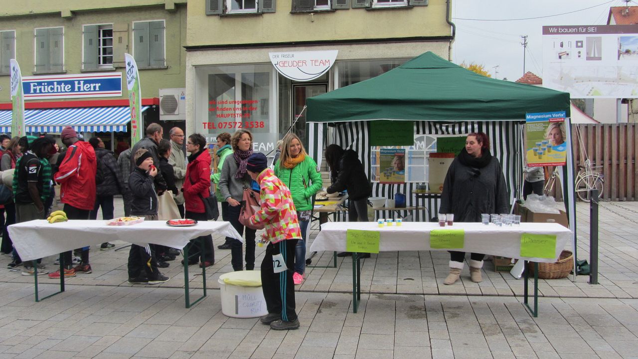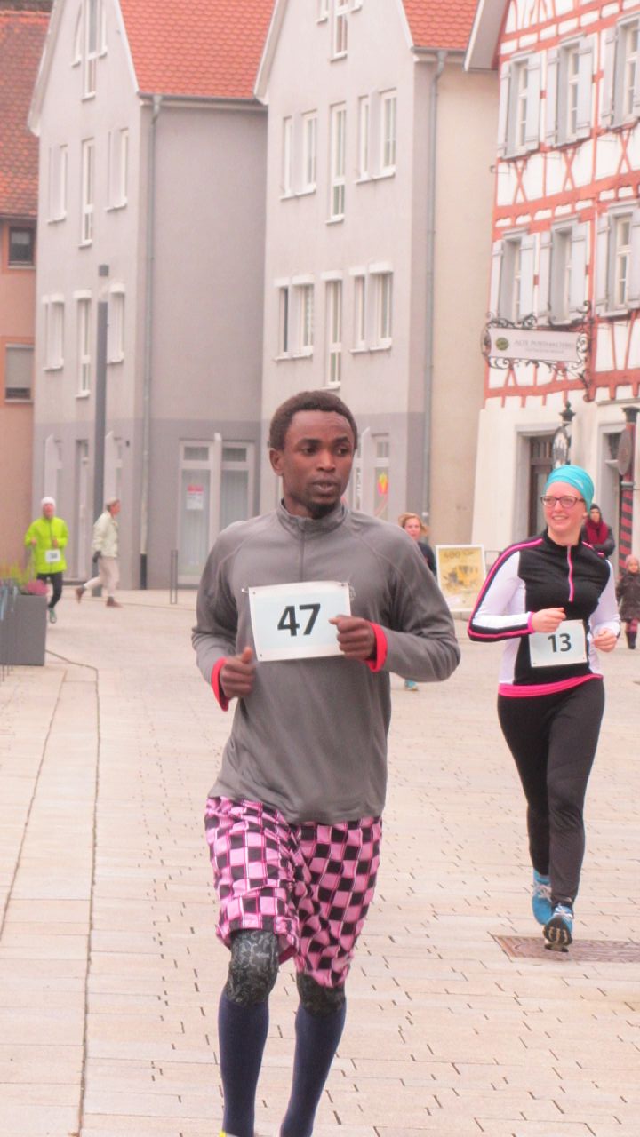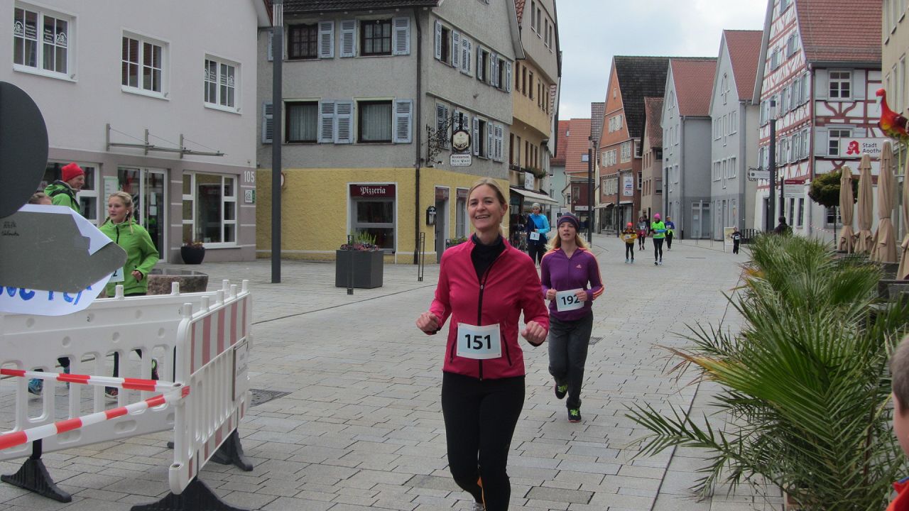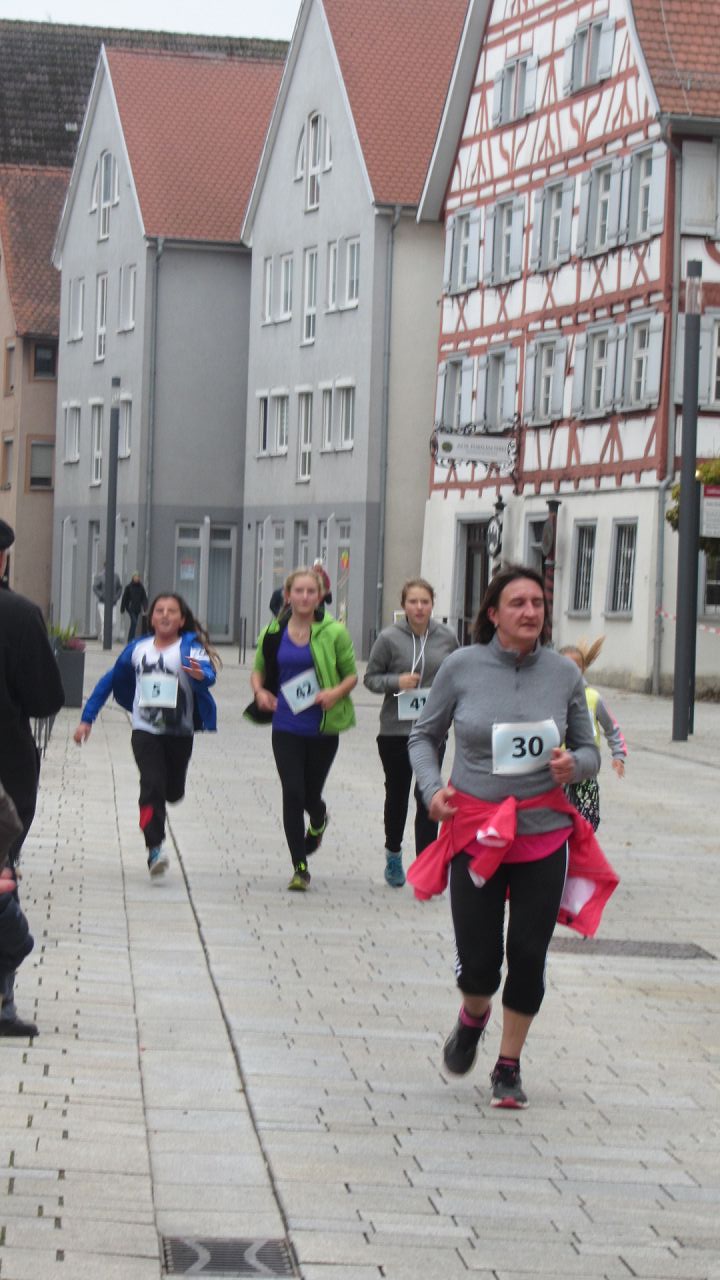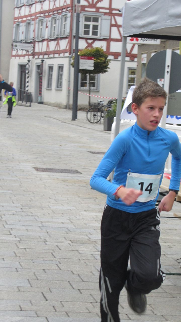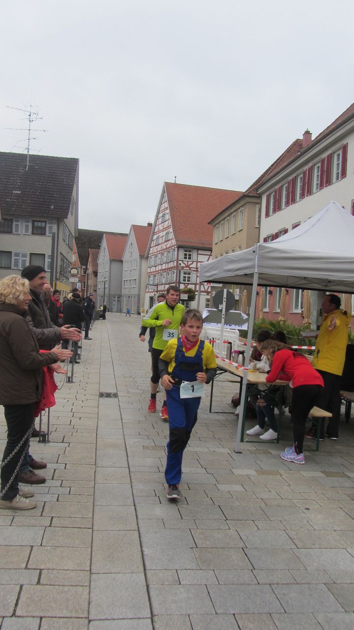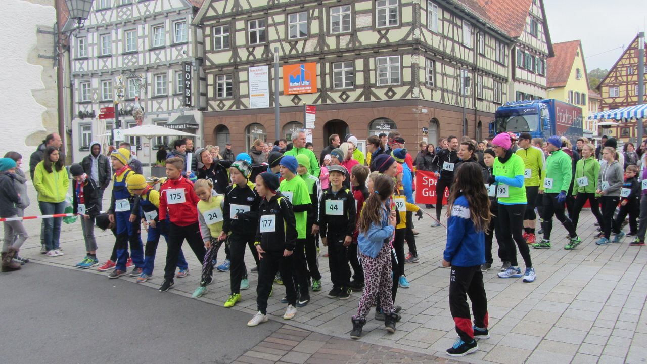 140 Läufer zu Höchstleistungen. Der Moderator gab fleißig Runde für Runde die Ergebnisse durch und sparte nicht an motivierenden Sprüchen. Der Elternbeirat hielt stets Getränke und leckeres Obst, hüsch portioniert zur Stärkung bereit. Petrus ließ es nur anderswo tröpfeln, aber nicht ums Mengener Rathaus herum. Die Streckenposten motivierten, die Sanis patrouillierten ... Und so kam es, dass die Läufer liefen und liefen und liefen ... Die Rundenzähler kamen manchmal aus dem Staunen gar nicht heraus. Zwei Fünftklässler, Leon F. und Kristina waren vom ersten Start um 14 Uhr an dabei und ließen sich gar nicht mehr bremsen. 27km war ihr Tagesrekord bei den Kindern und Jugendlichen an diesem Tag. Auch die Erwachsenen ließen nicht locker und brachten die Mengener Rathausrunde von ca.1km Runde um Runde hinter sich. Paul Steinacher aus Herbertingen brachte es auf ganze 40km und stellte damit den Rekord unter den Erwachsenen auf.